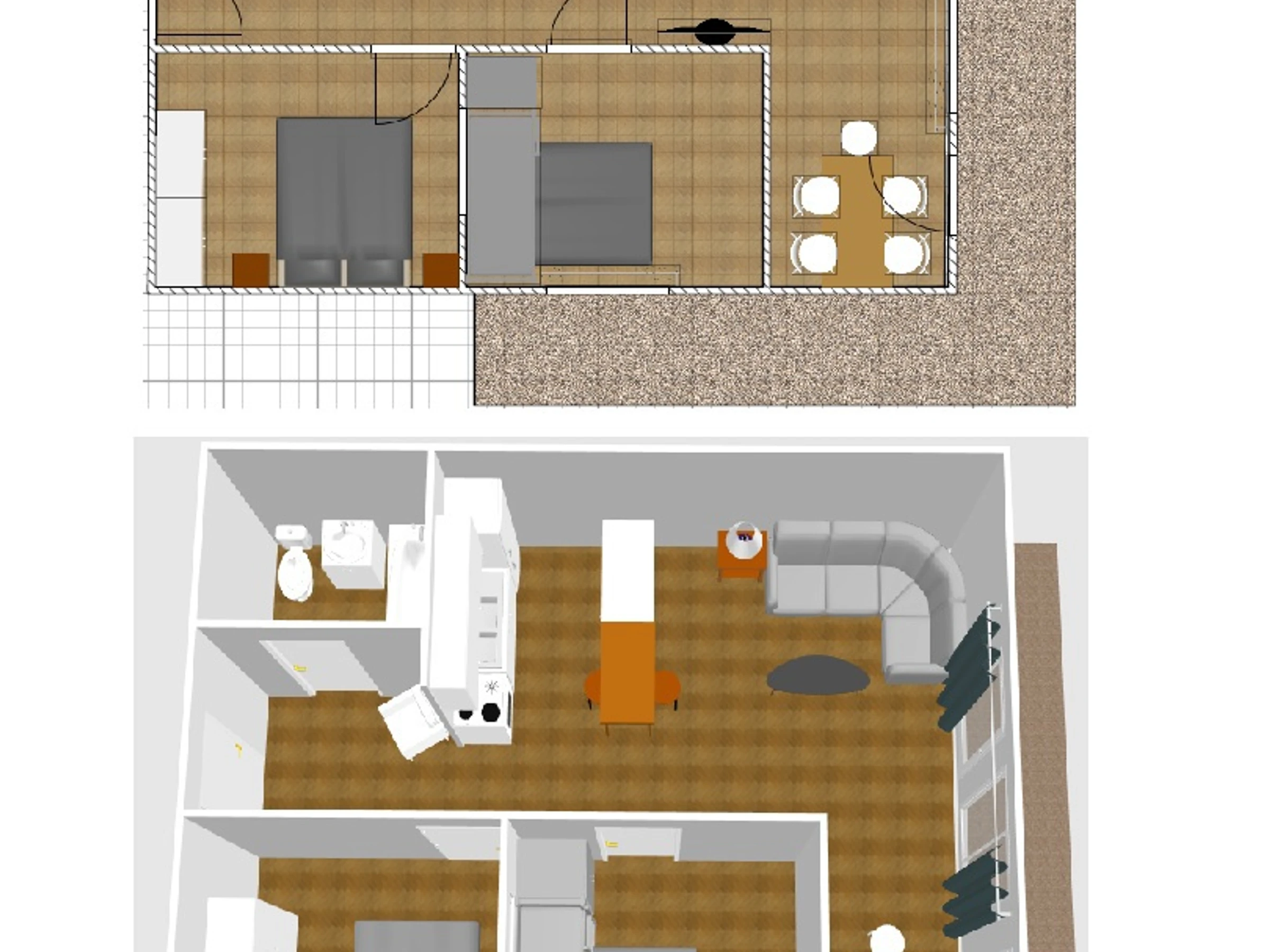 3 pièces de 47 m2 pouvant accueillir 4 personnes.