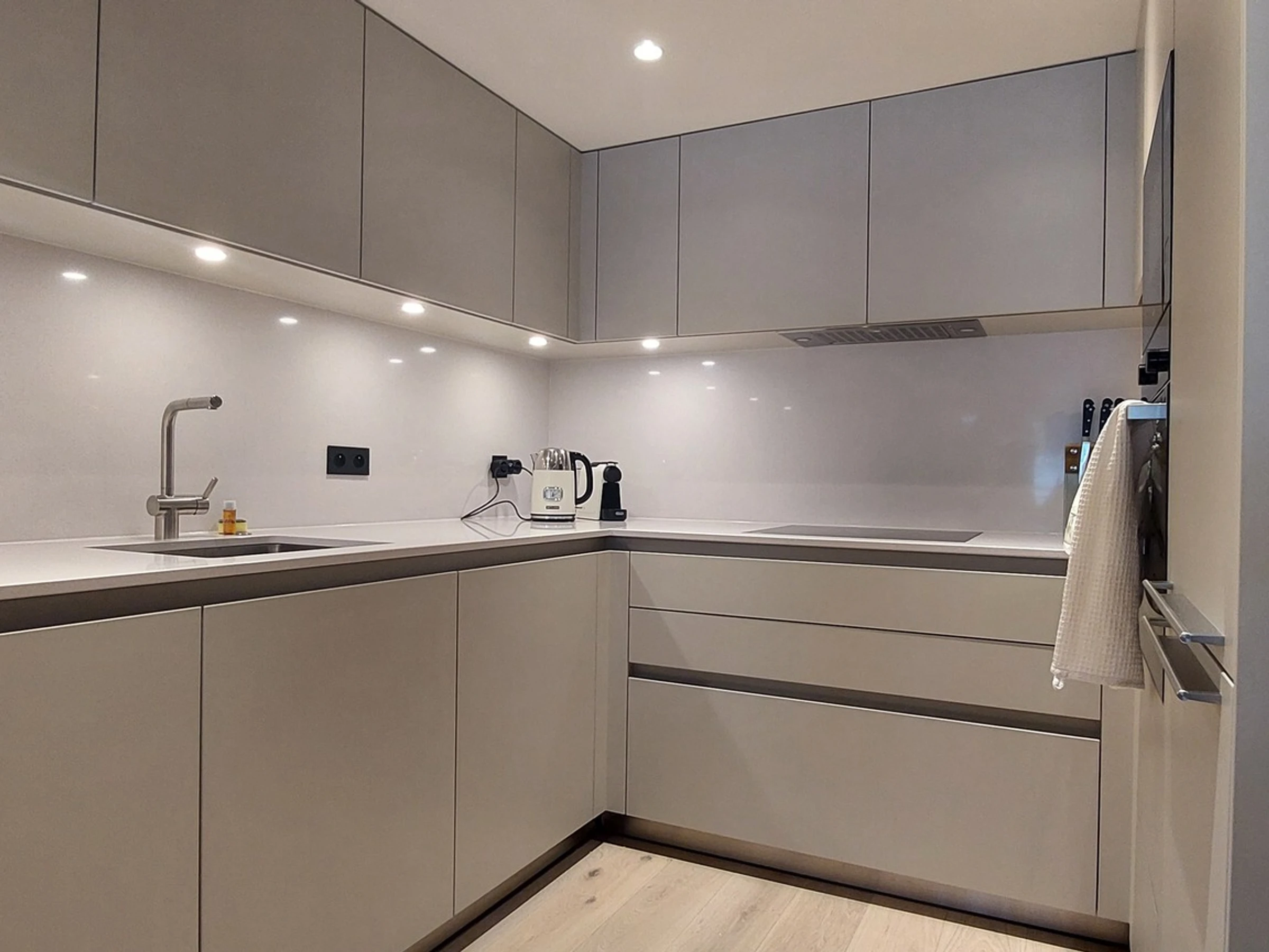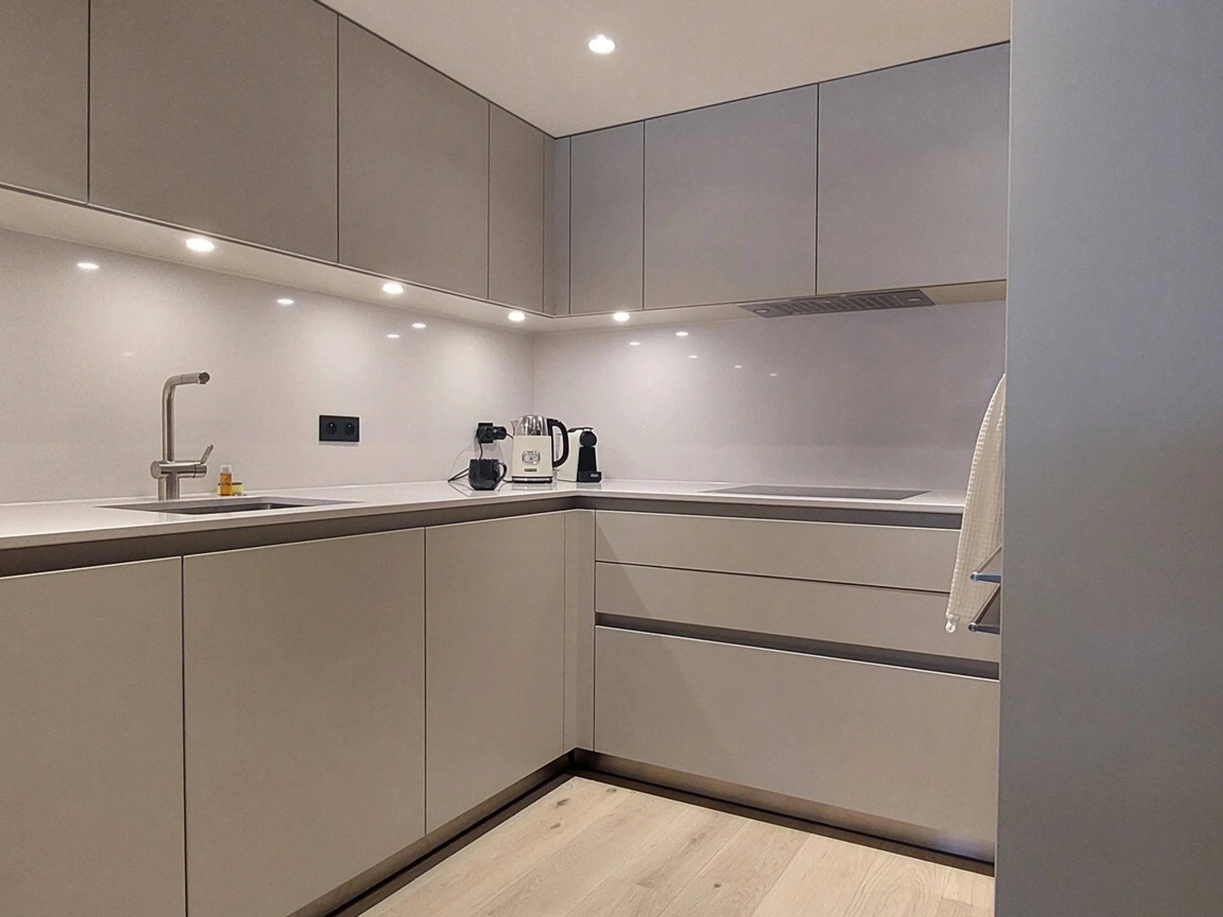 Equipée d'un lave-vaisselle, four, plaque à induction, hotte aspirante, four micro-ondes, réfrigérateur avec congélateur