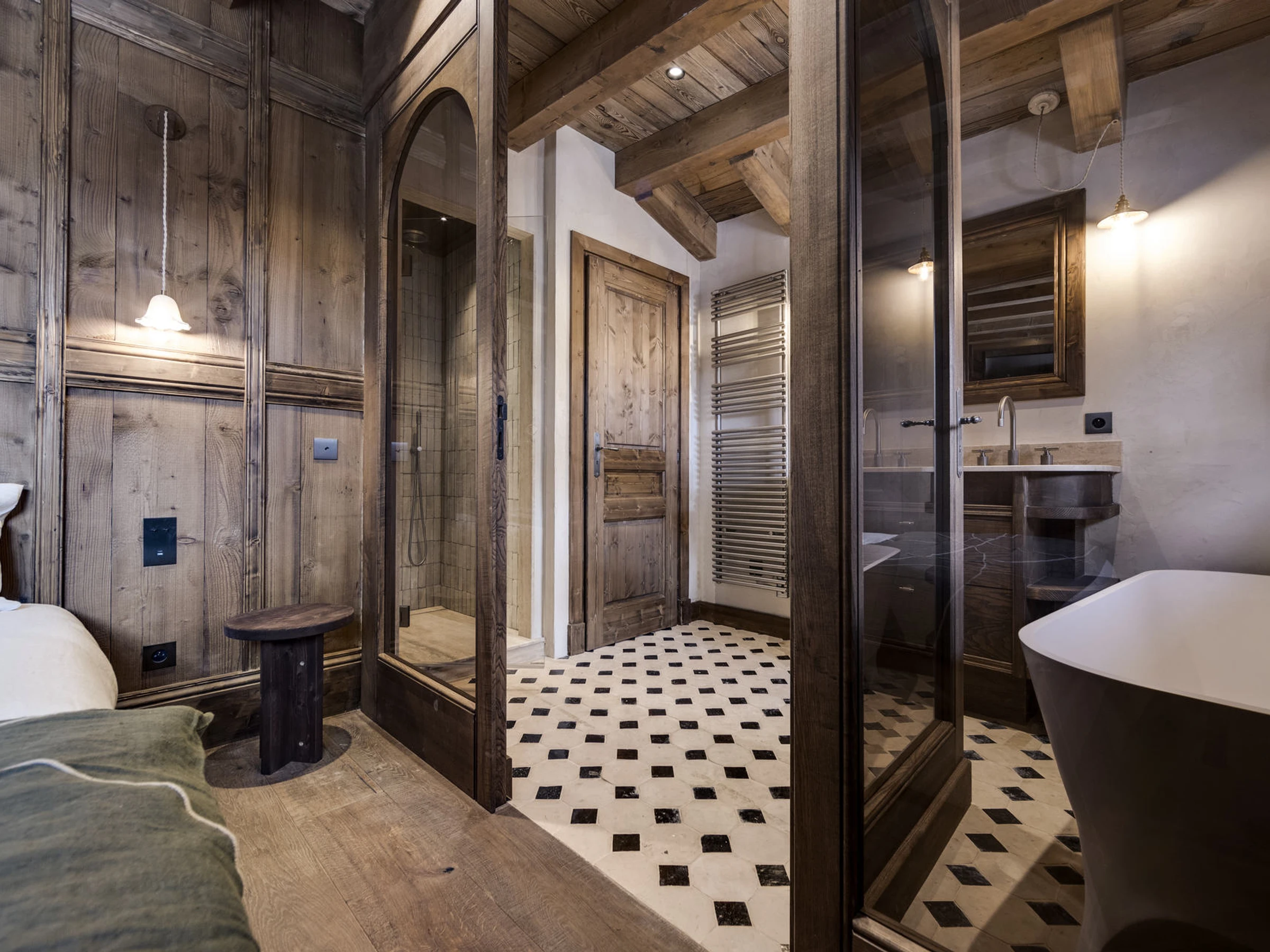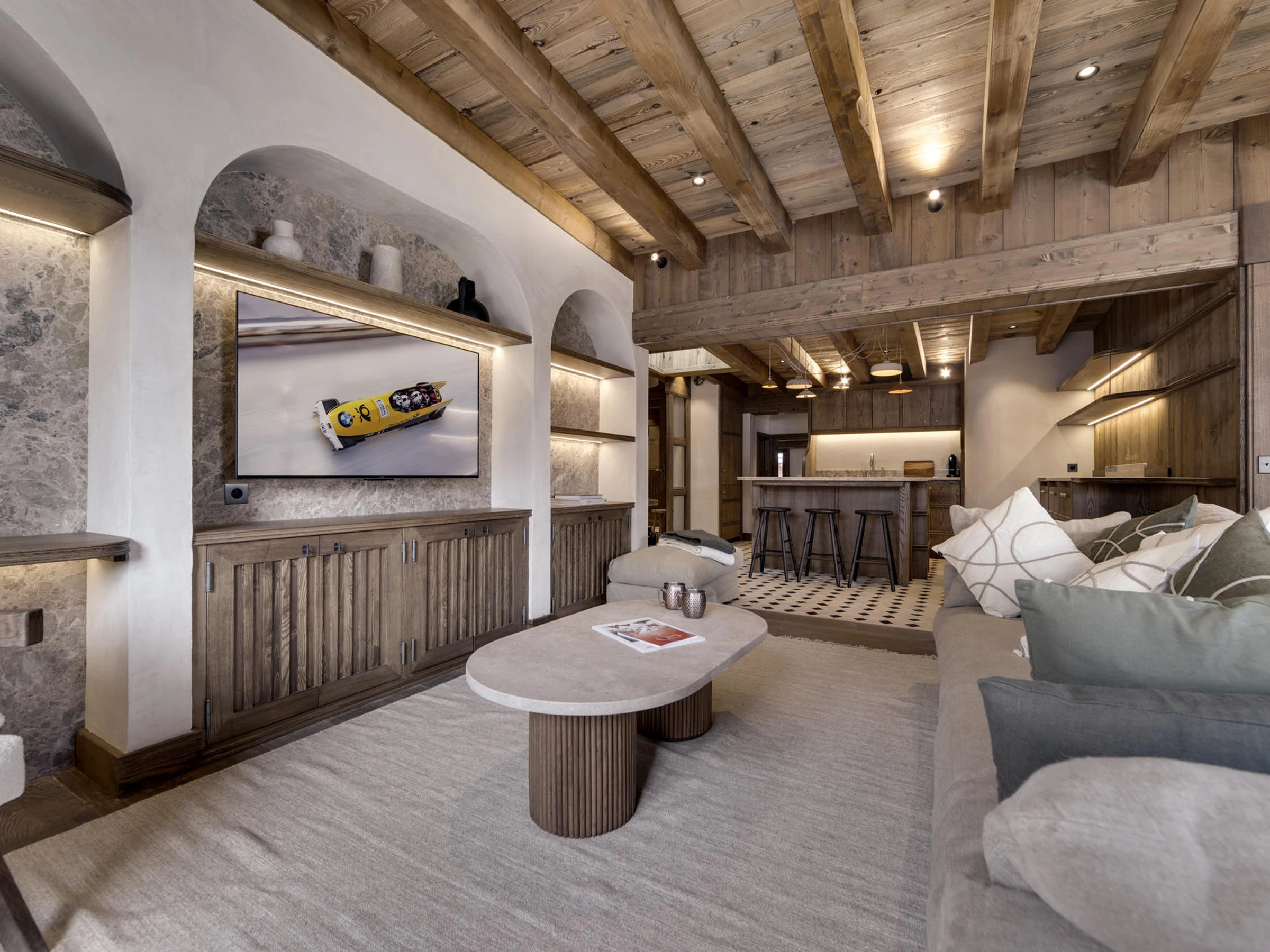 Les matériaux nobles tels que le bois et la pierre, associés à des tissus cocooning, créent une ambiance chaleureuse et raffinée. Les lignes élégantes et contemporaines se marient parfaitement avec des touches de décoration alpine, offrant à ses hôtes un cadre luxueux et authentique.