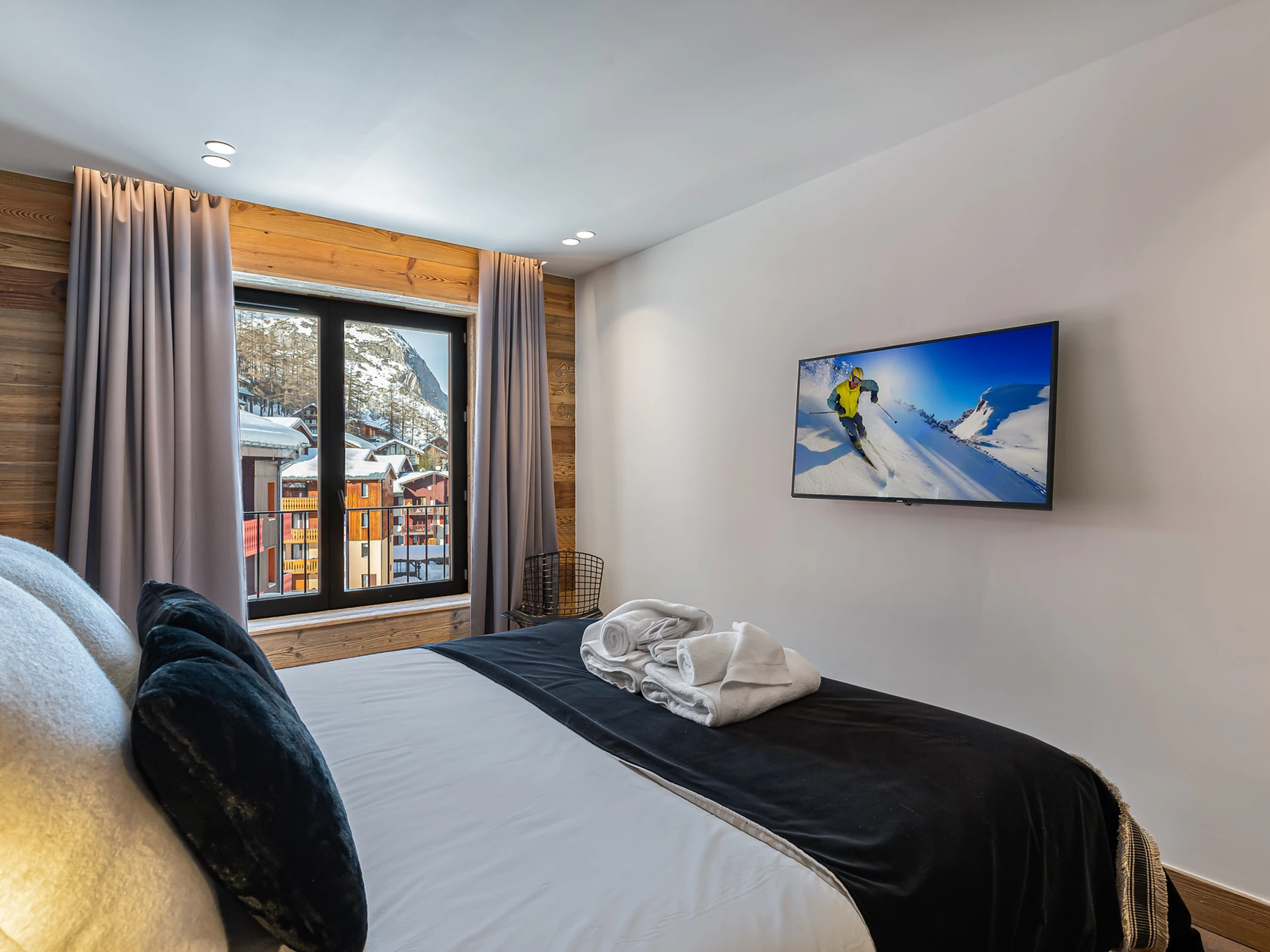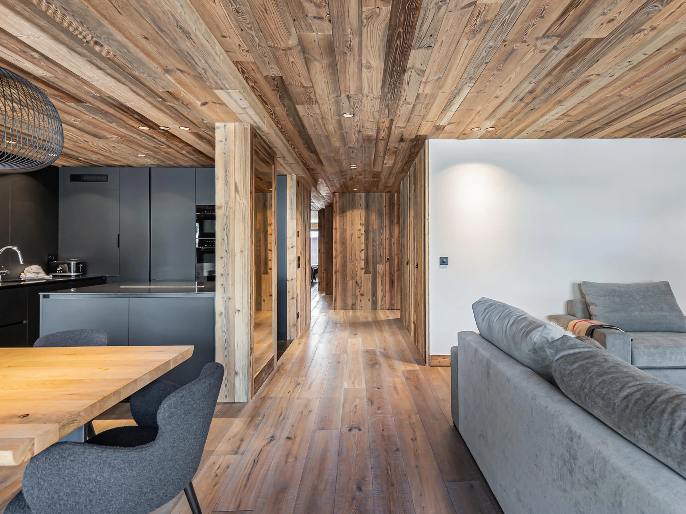 Au 3ème étage, proche des commodités et des pistes, ce merveilleux appartement de 135m² décoré de vieux bois et de matériaux de luxe, avec une terrasse de 20m², peut accueillir 6 adultes et 3 enfants.