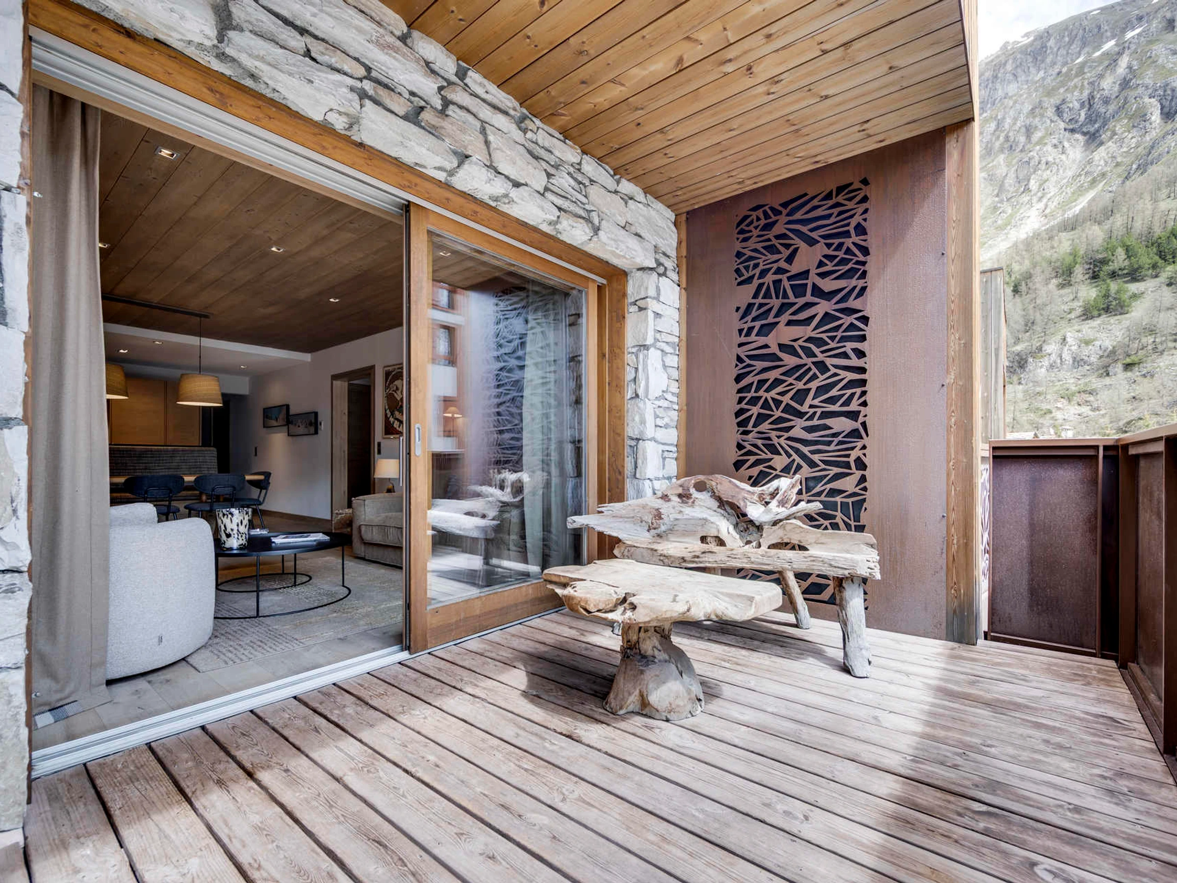 Résidence de prestige à 500m du centre de Val d'Isère et de la remontée mécanique du Solaise Express. parking couvert. Appartements de 5 à 8 personnes au rez-de-chaussé et 1er étage. Navette gratuite vers le centre et les psites à deux pas.