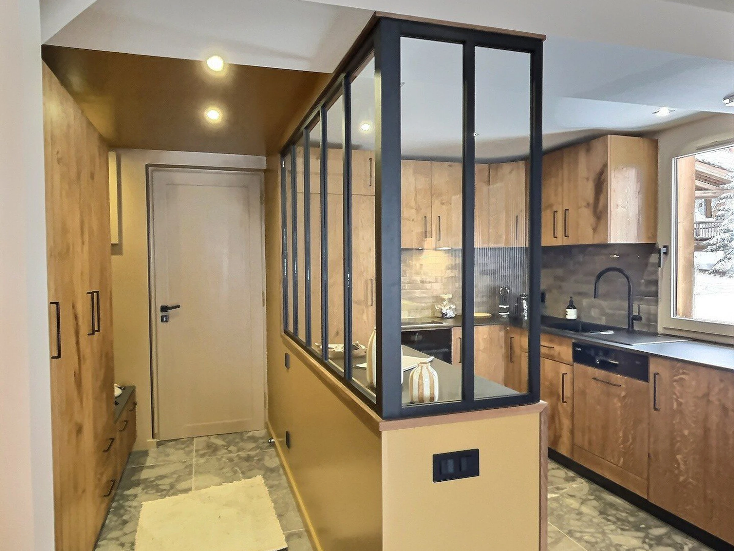 La cuisine, ouverte sur le séjour, est un espace élégant doté de plaques vitrocéramiques, d'un four, d'un lave-vaisselle, d'un lave-linge séchant et d'un réfrigérateur, ainsi que appareil à raclette et fondue permettant ainsi la préparation de délicieux repas savoyard dans une ambiance conviviale.