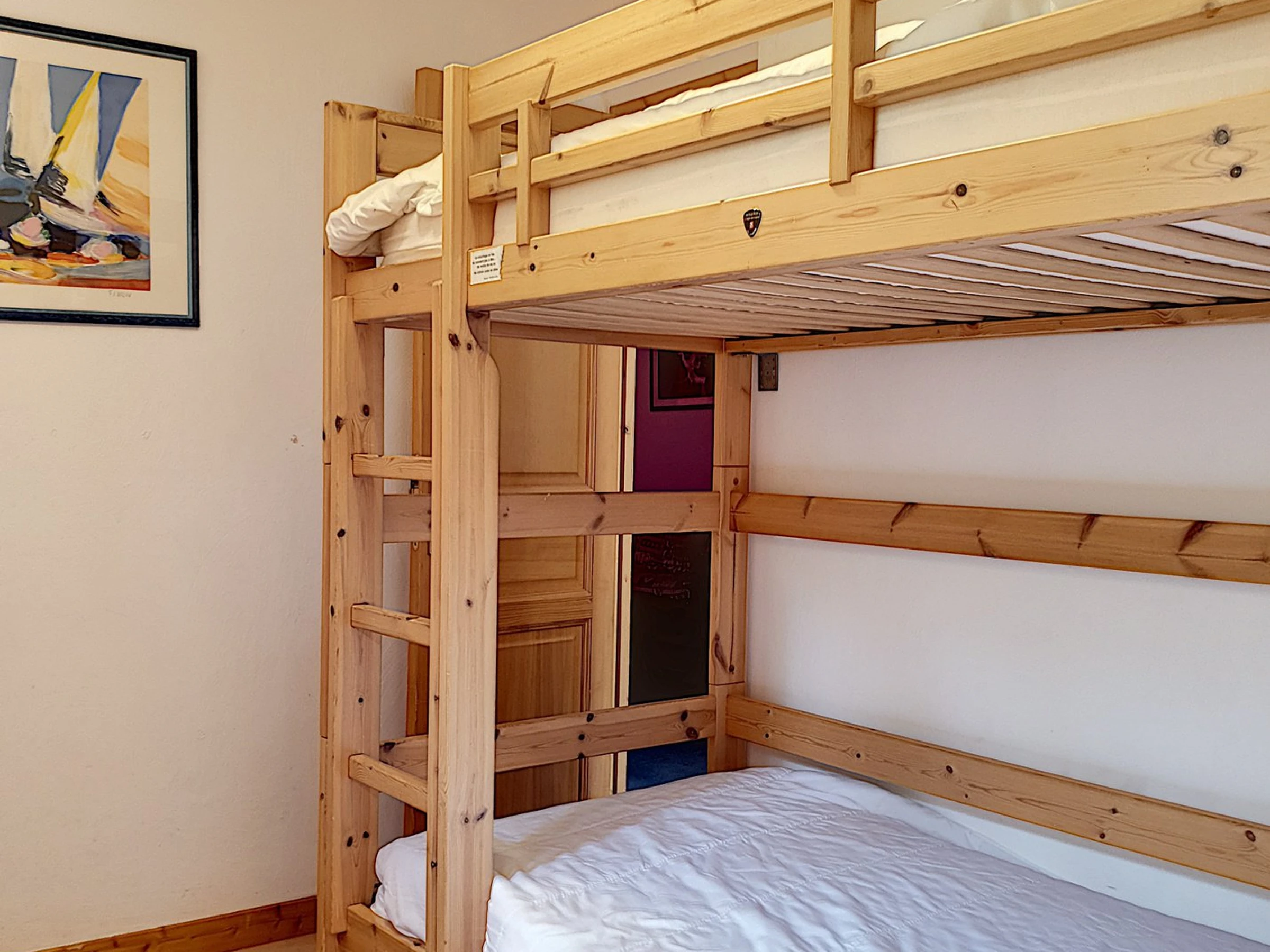 1 chambre avec 2 couchages en lits superposés.