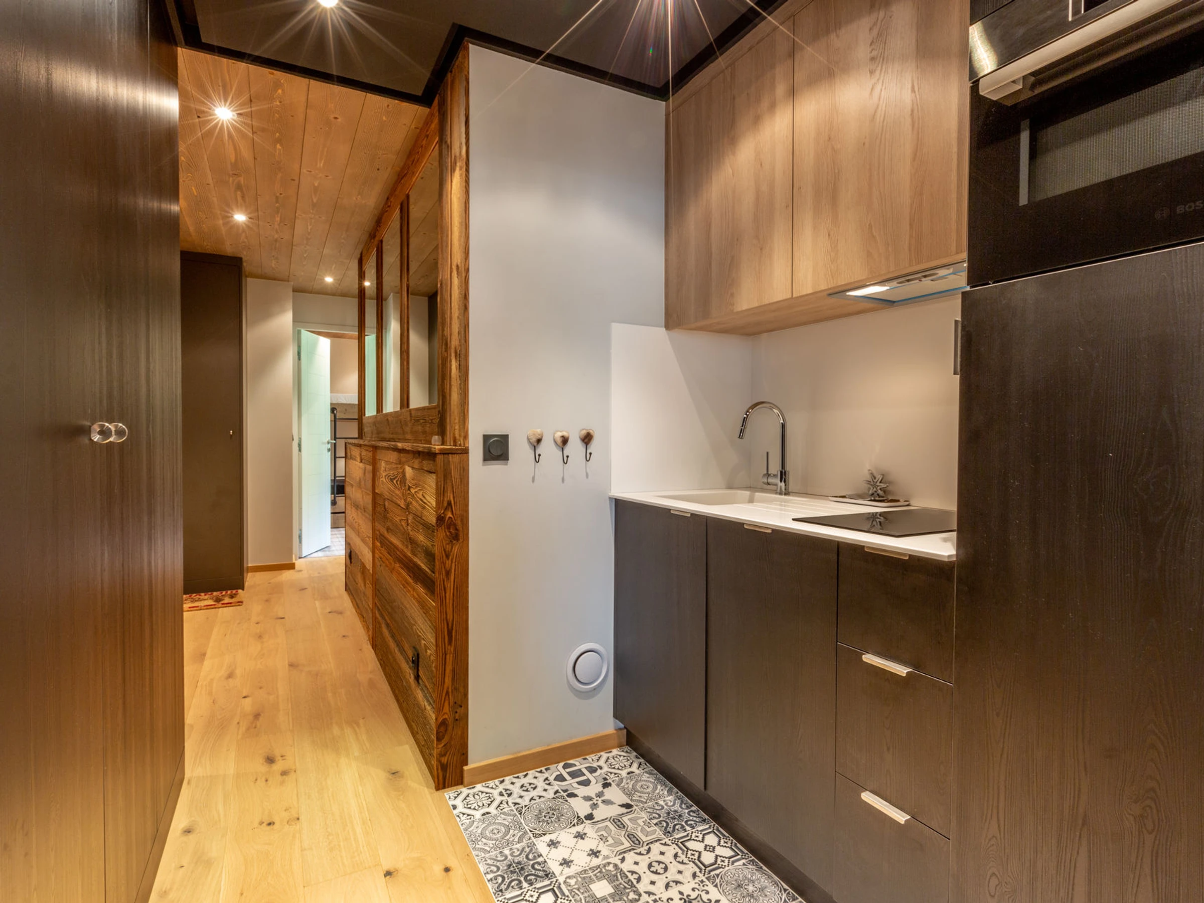 Equipée d'un lave-vaisselle, plaque induction, hotte aspirante, réfrigérateur et d'un four micro-ondes