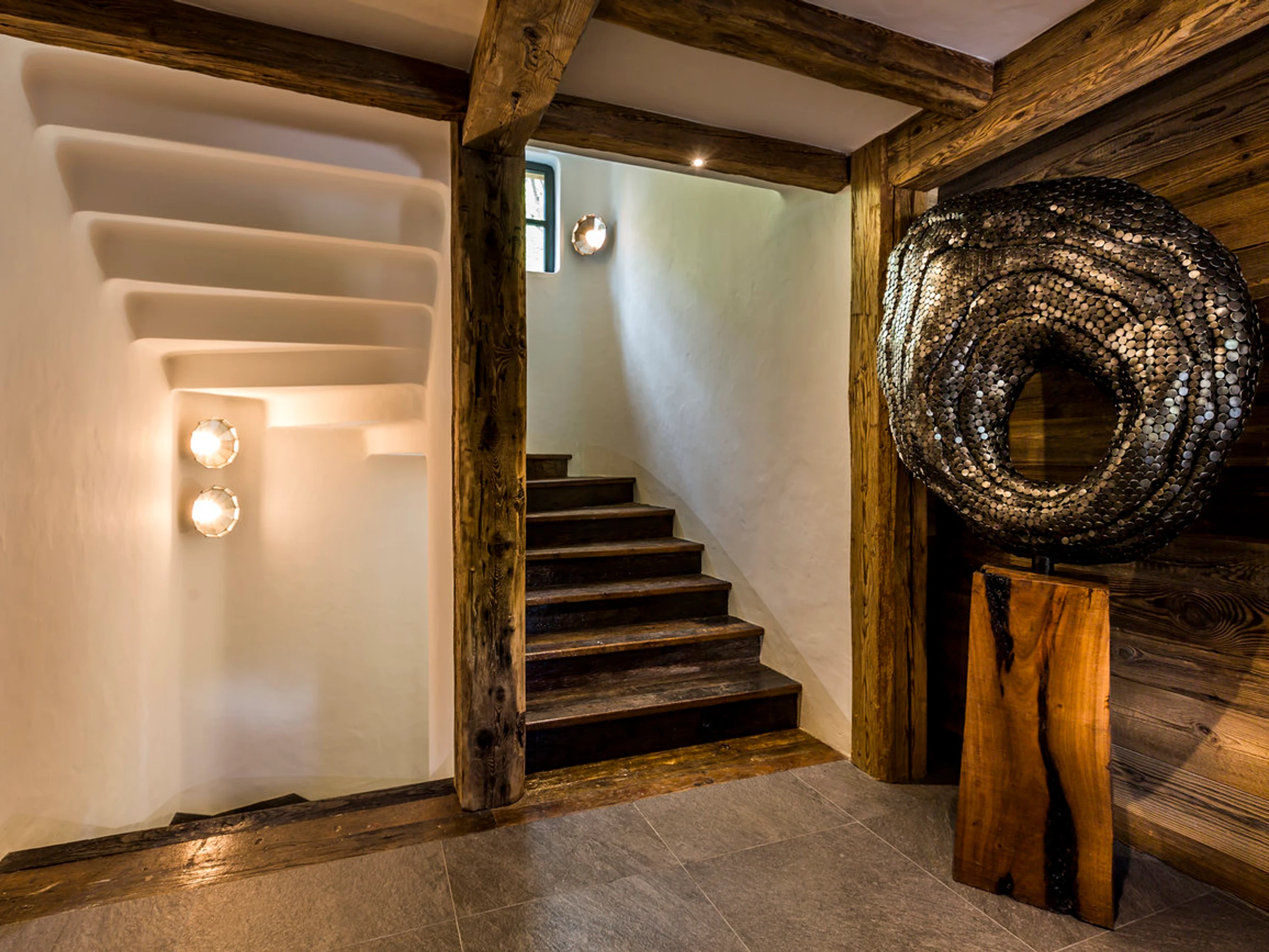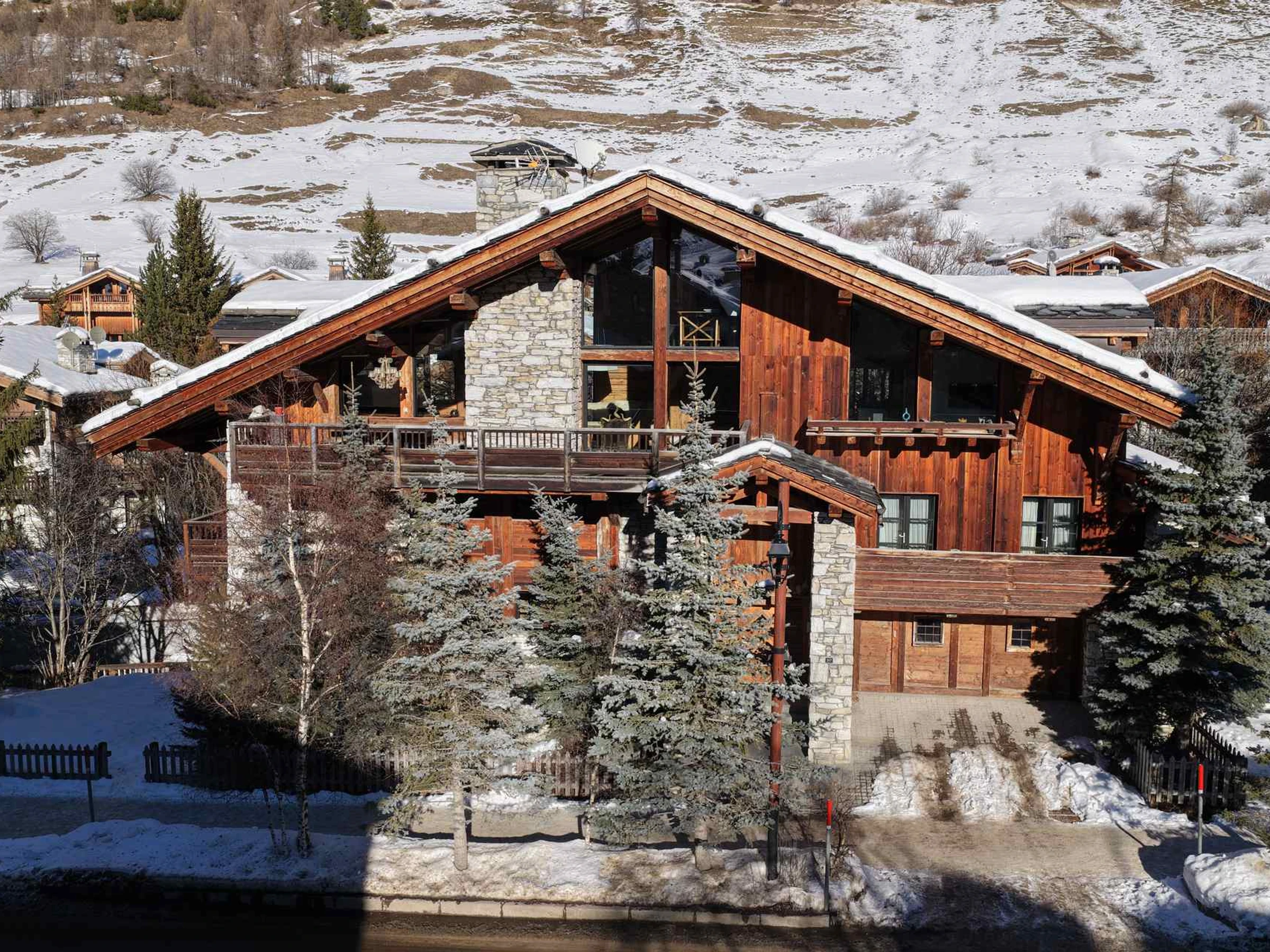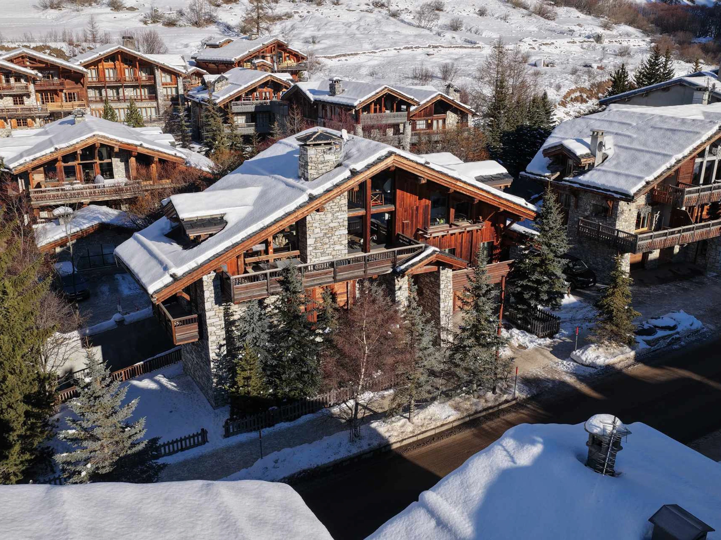 Chalet indépendant prestigieux de 7 pièces, situé dans la rue principale, 350 m2 répartis sur 4 niveaux, en vieux bois, avec piscine chauffée et hammam, pouvant accueillir 10 personnes