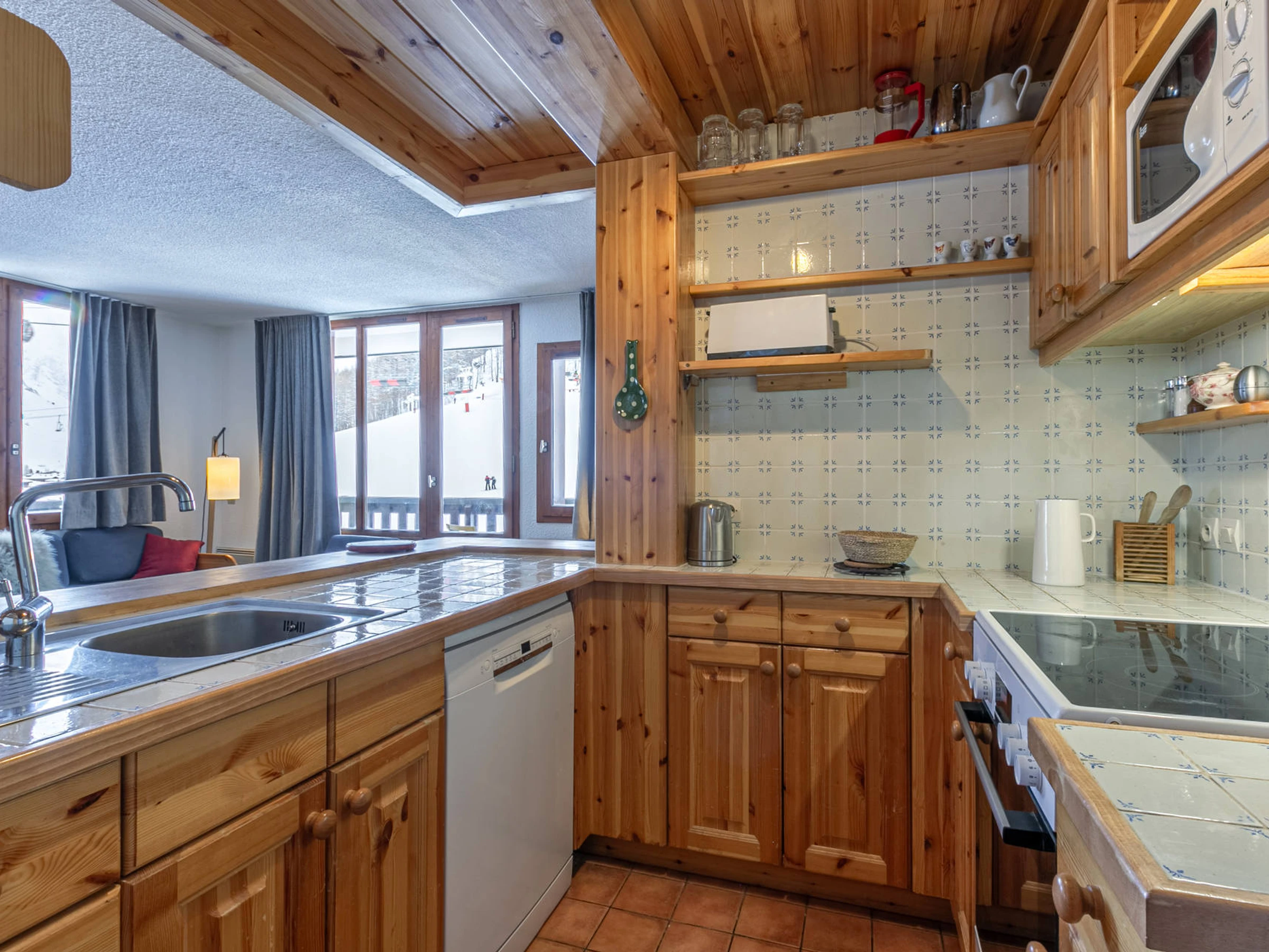 Equipée d'une cuisinière avec four, lave-vaisselle, grand réfrigerateur avec compartiment congélation et four micro-ondes