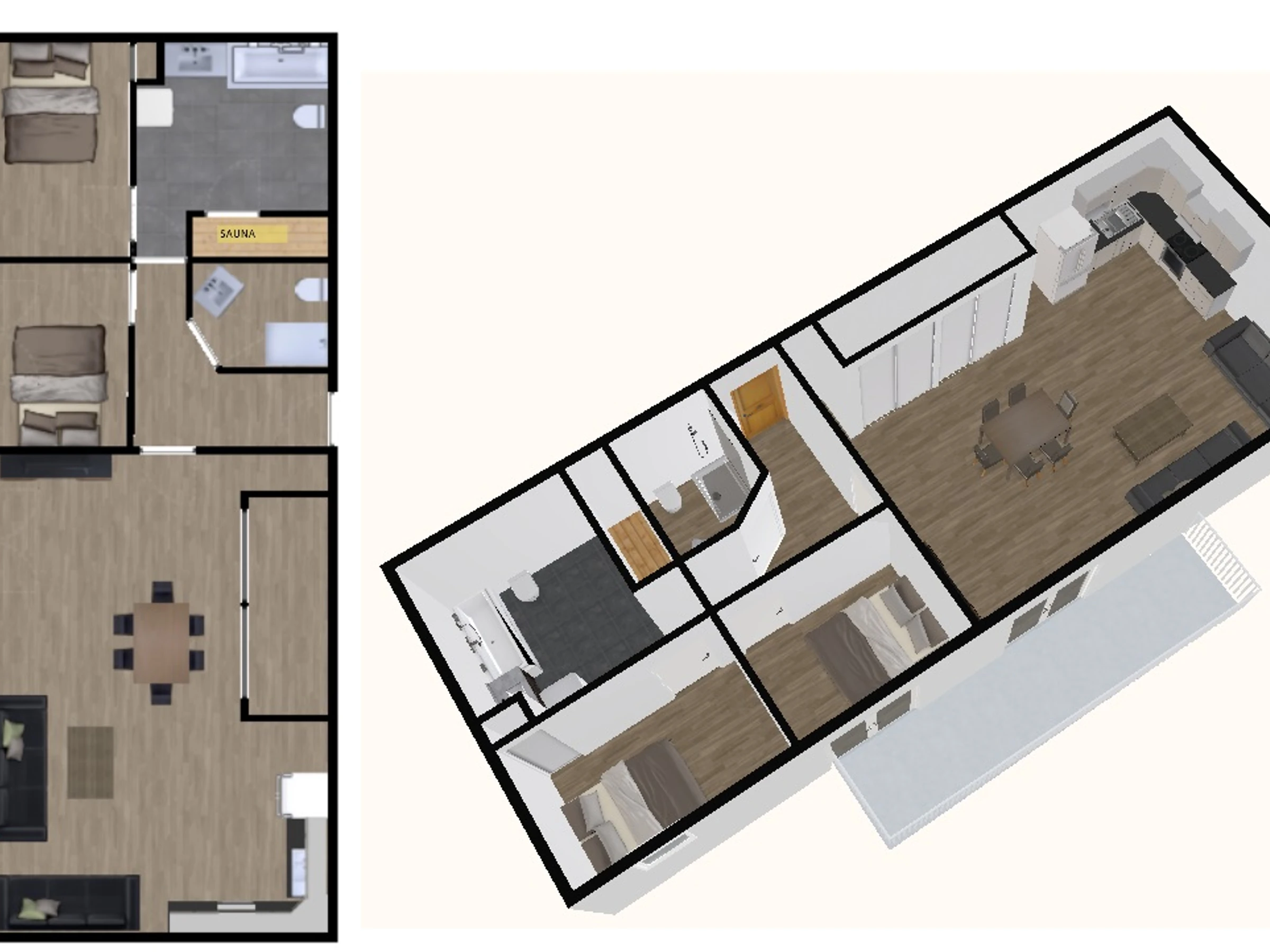 3 pièces de standing avec Sauna de 70m2 pouvant accueillir 6 personnes.