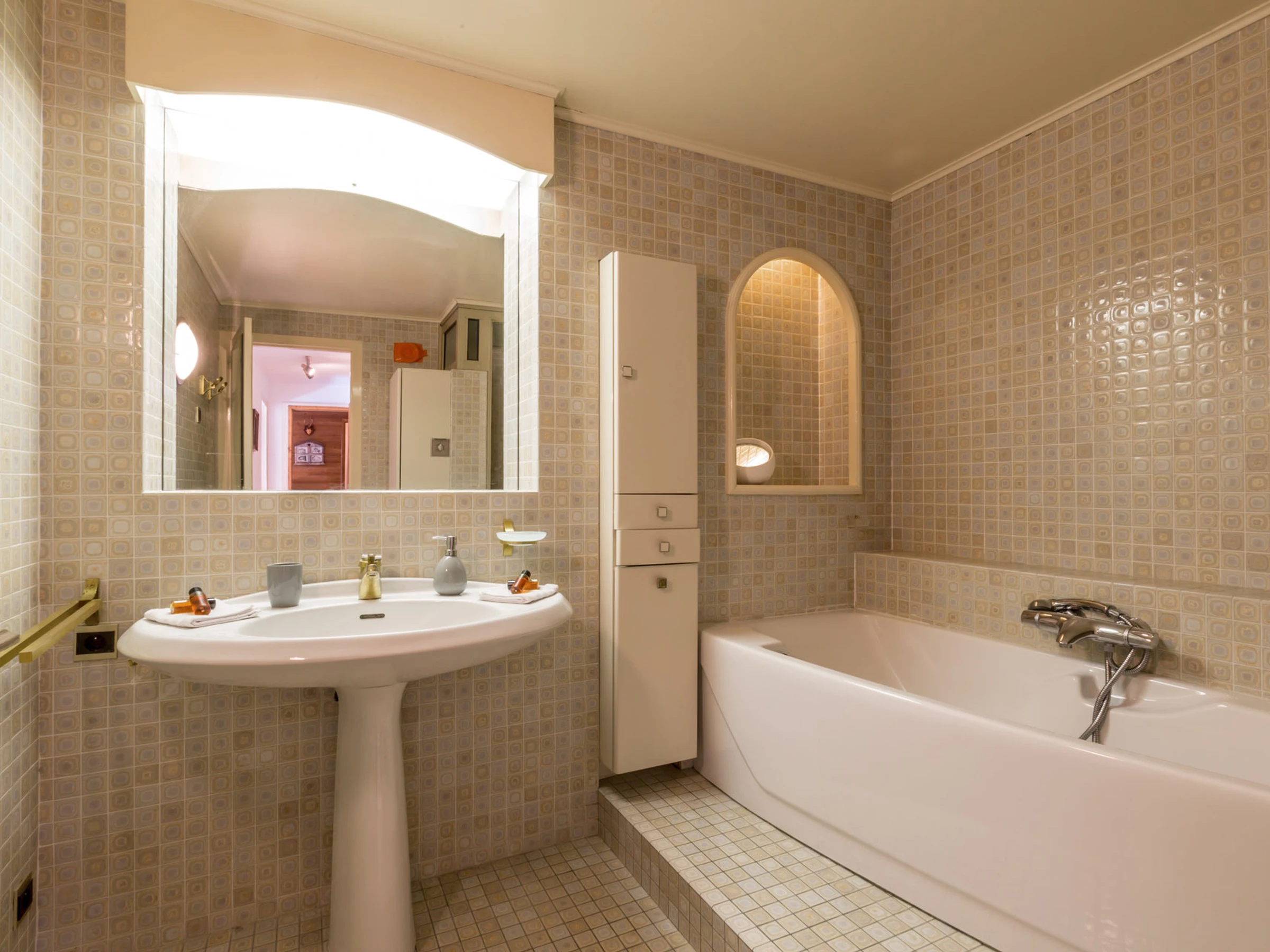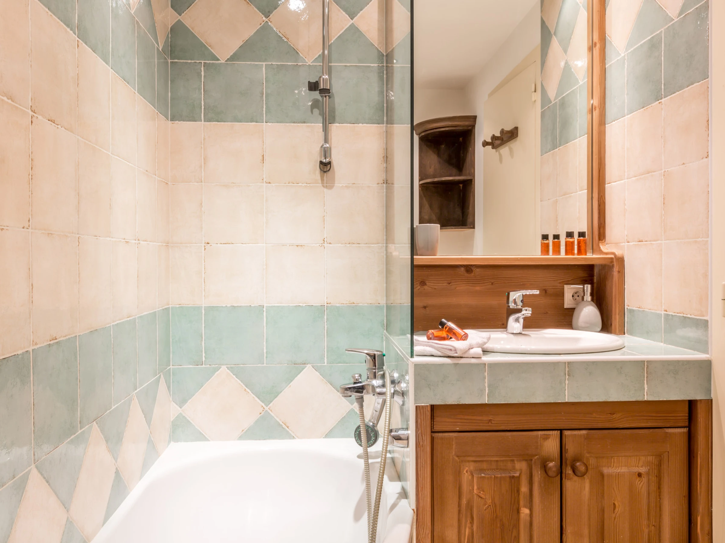 1 grande salle de bain (douche + baignoire)