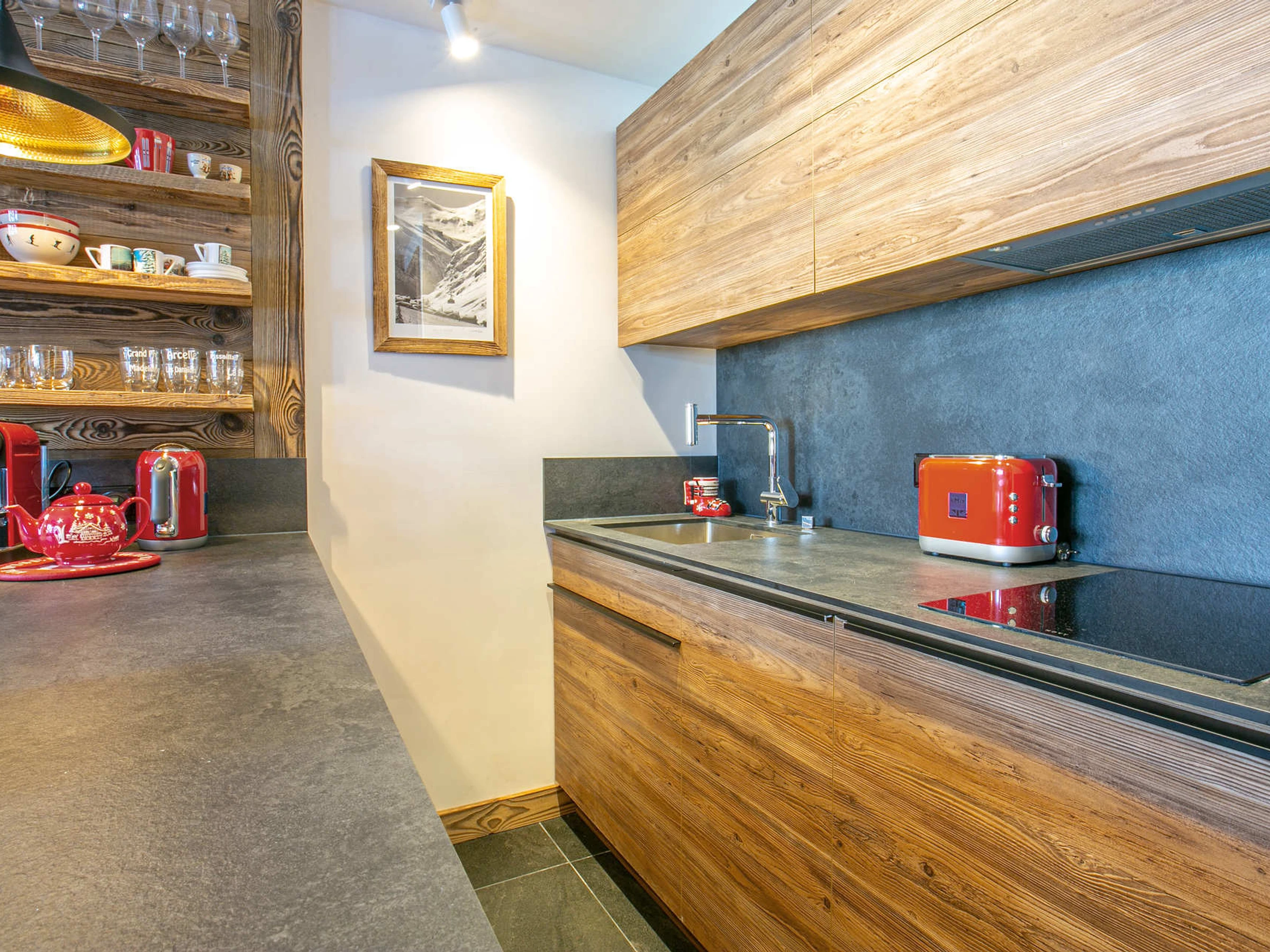 Equipée d'un micro-ondes/four, plaque vitrocéramique, réfrigérateur avec congélateur, hotte aspirante, lave-vaisselle, lave-linge avec sèche-linge