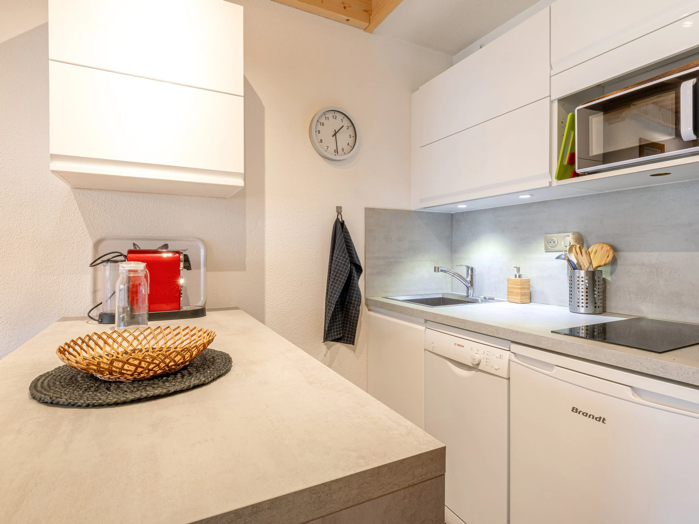 Equipée d'un four micro-ondes, four, réfrigérateur, plaque induction, lave-vaisselle