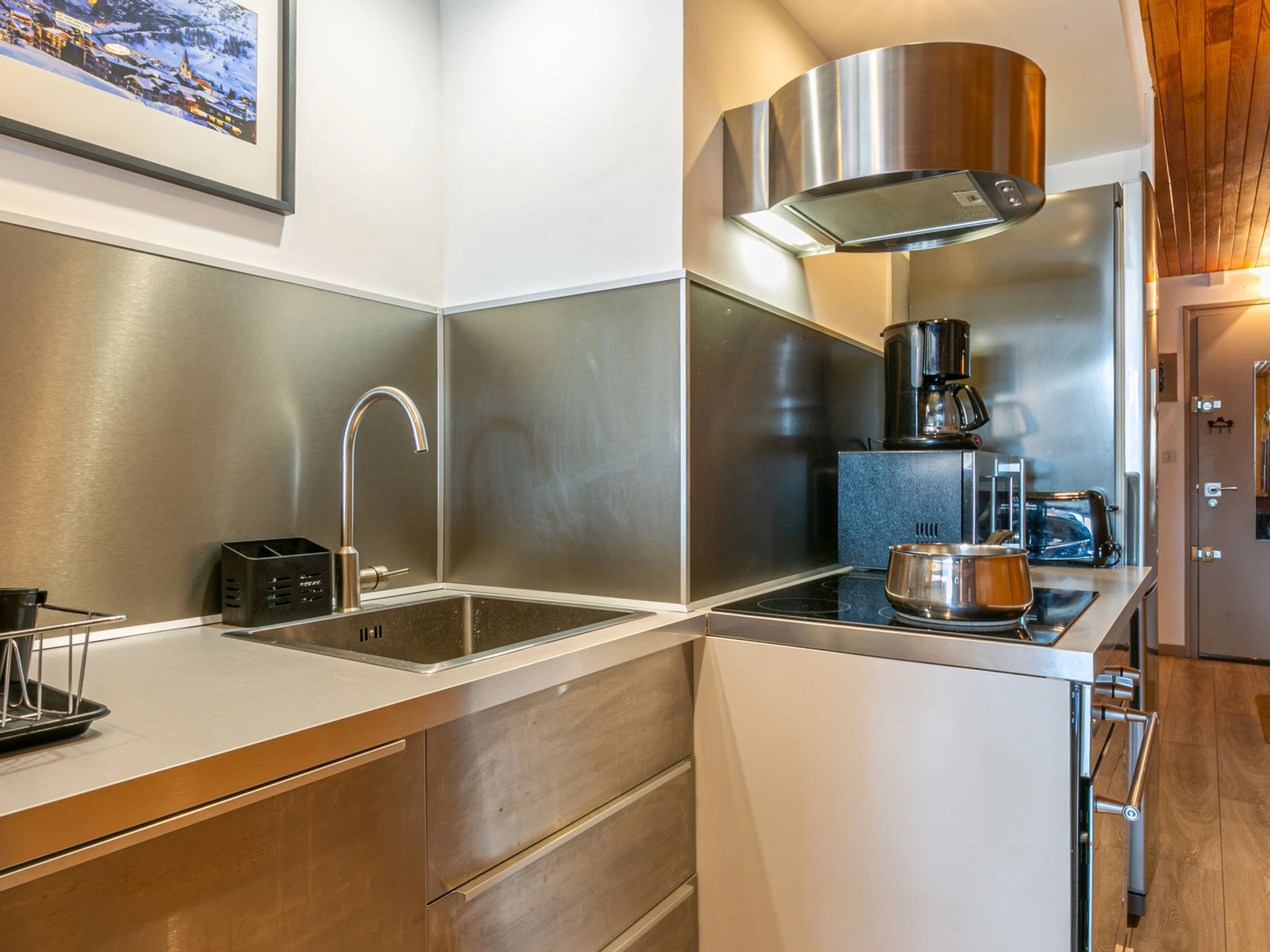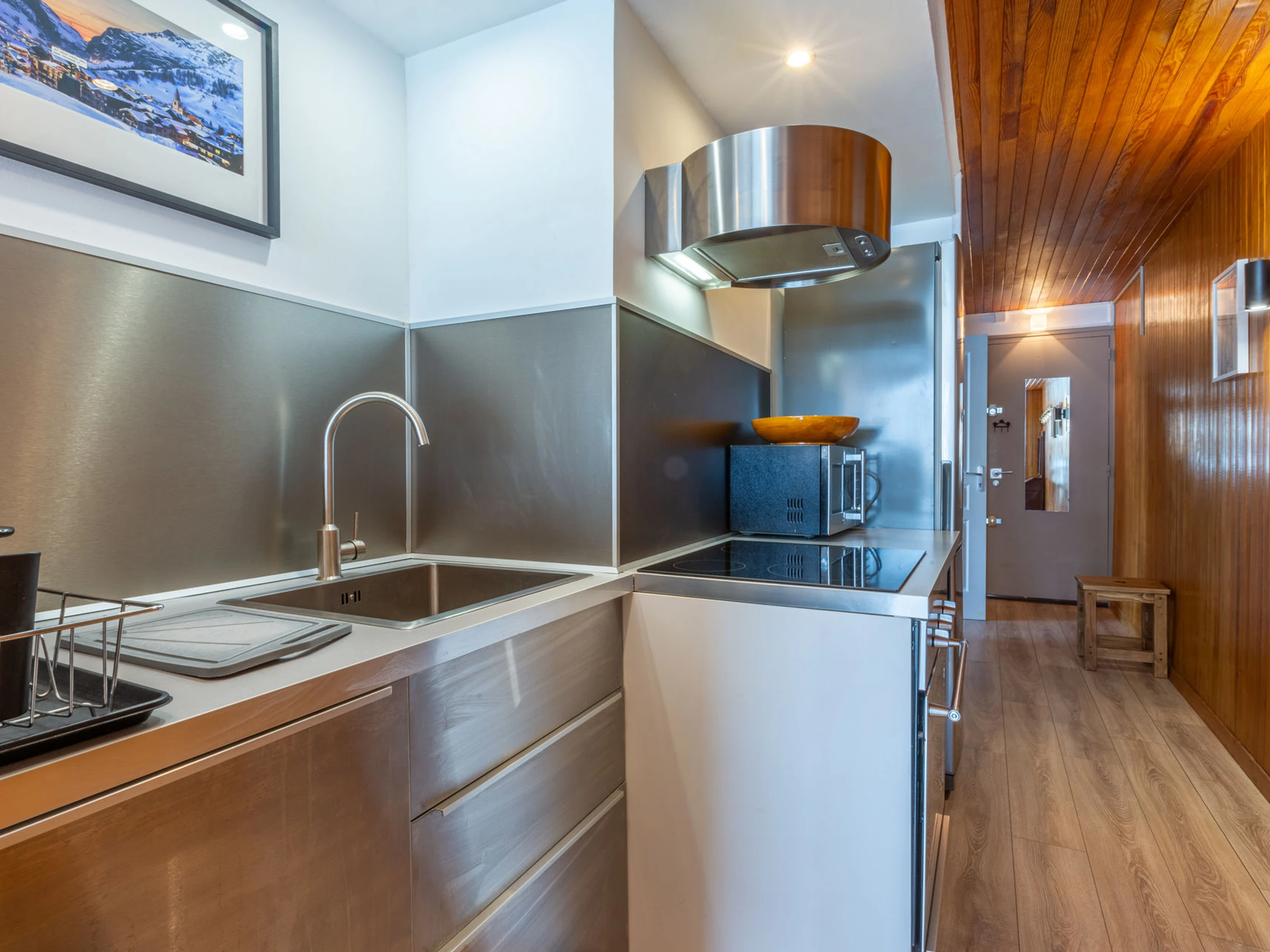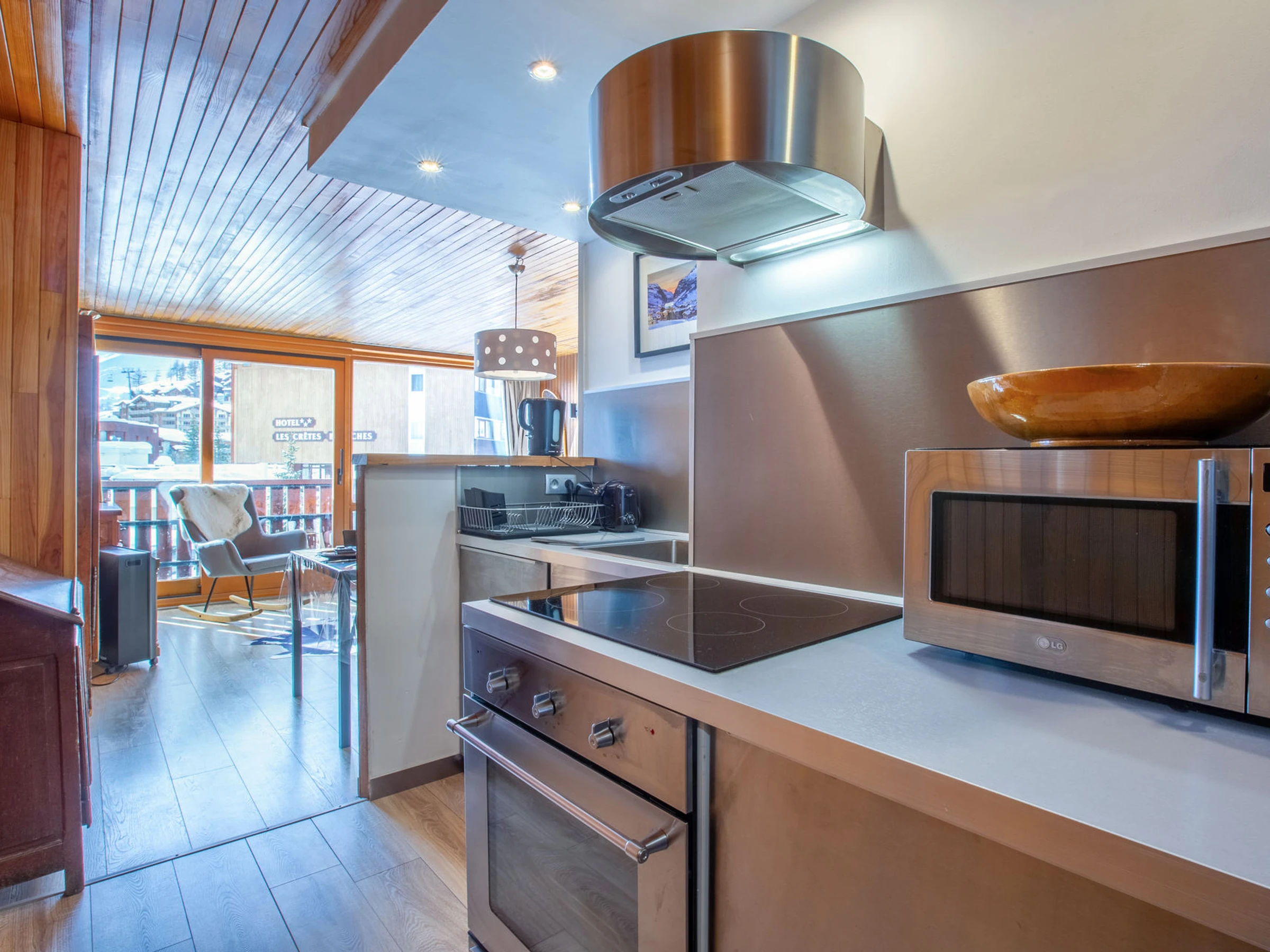 Equipée d'un four micro-ondes, four, lave-vaisselle, réfrigérateur avec congélateur, lave-linge, plaque vitrocéramique, hotte aspirante