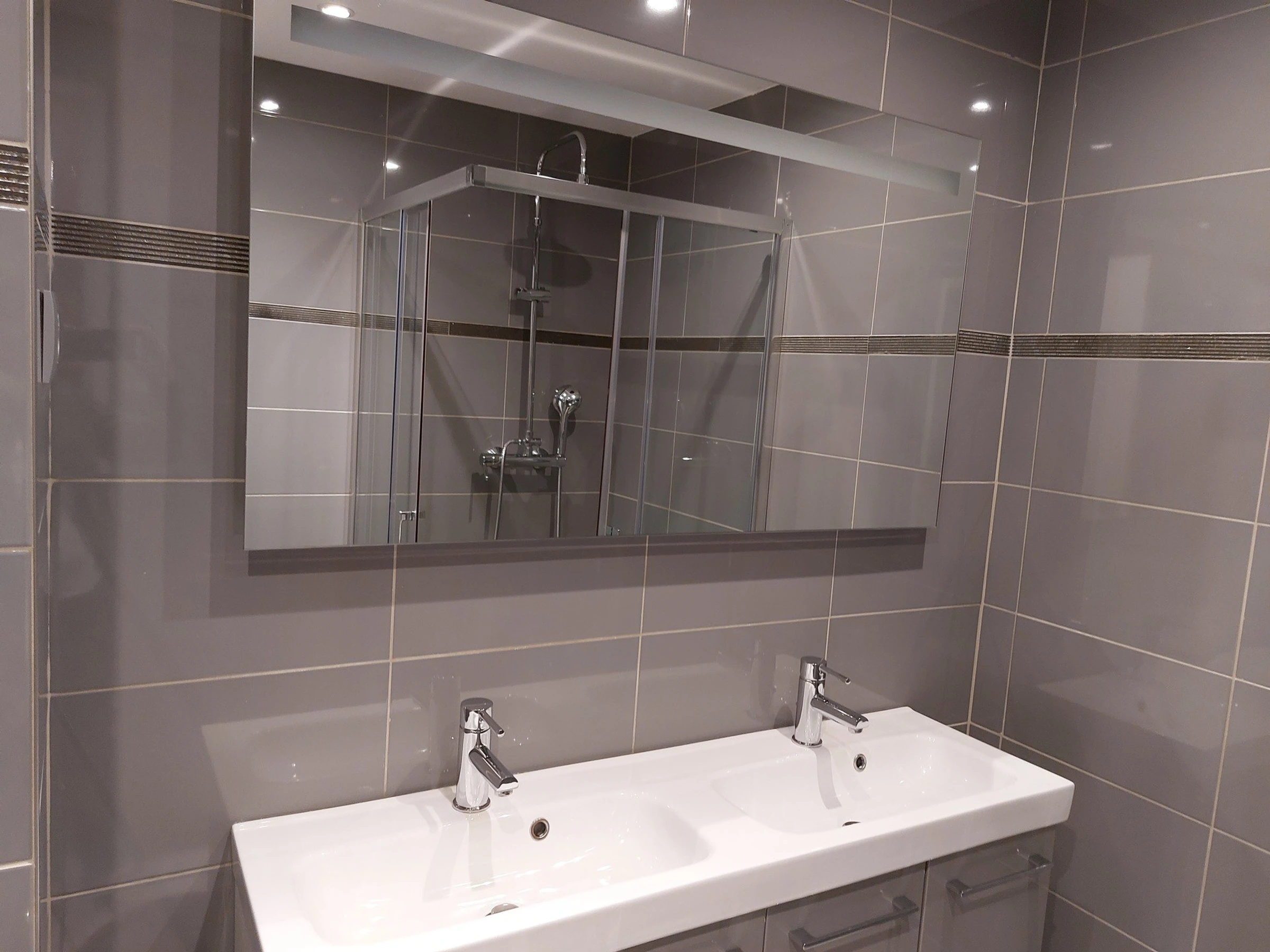 Salle de douche + 2 lavabos