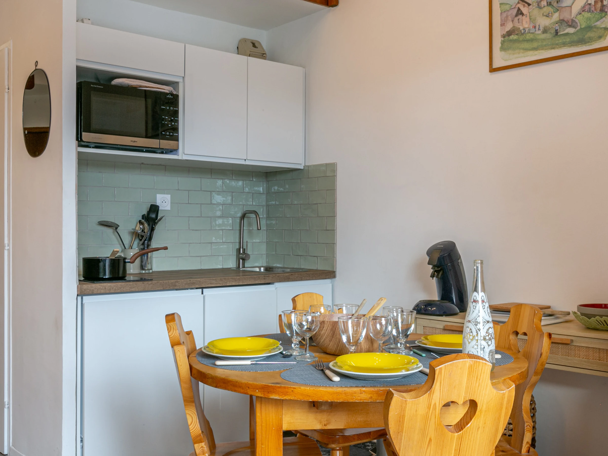 Equipée d'un lave-vaisselle, four micro-ondes avec grill, plaque vitrocéramique, réfrigérateur