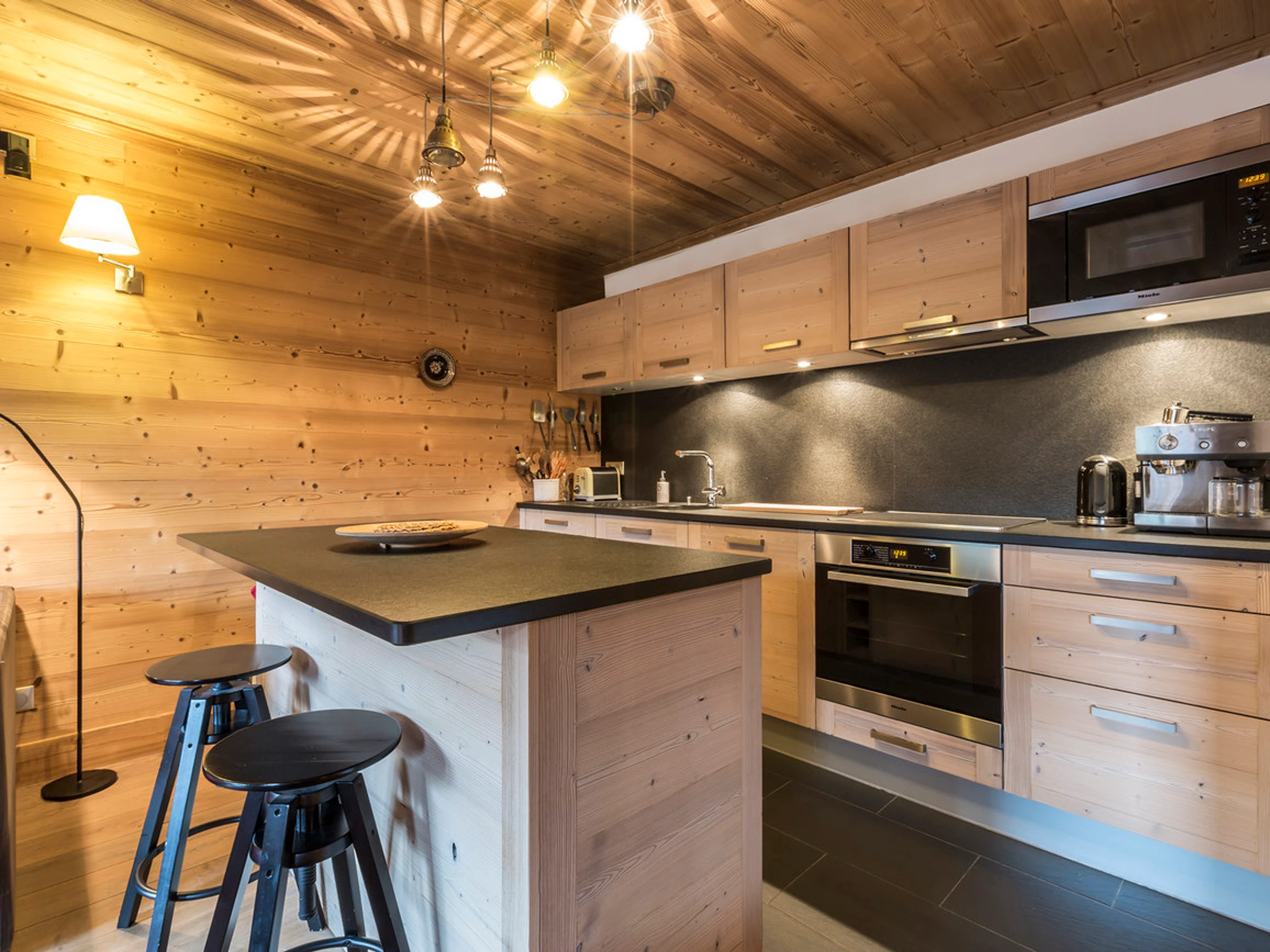 Equipée d'un lave-vaisselle, four, plaque vitrocéramique, hotte aspirante, four micro-ondes, grand réfrigérateur avec congélateur