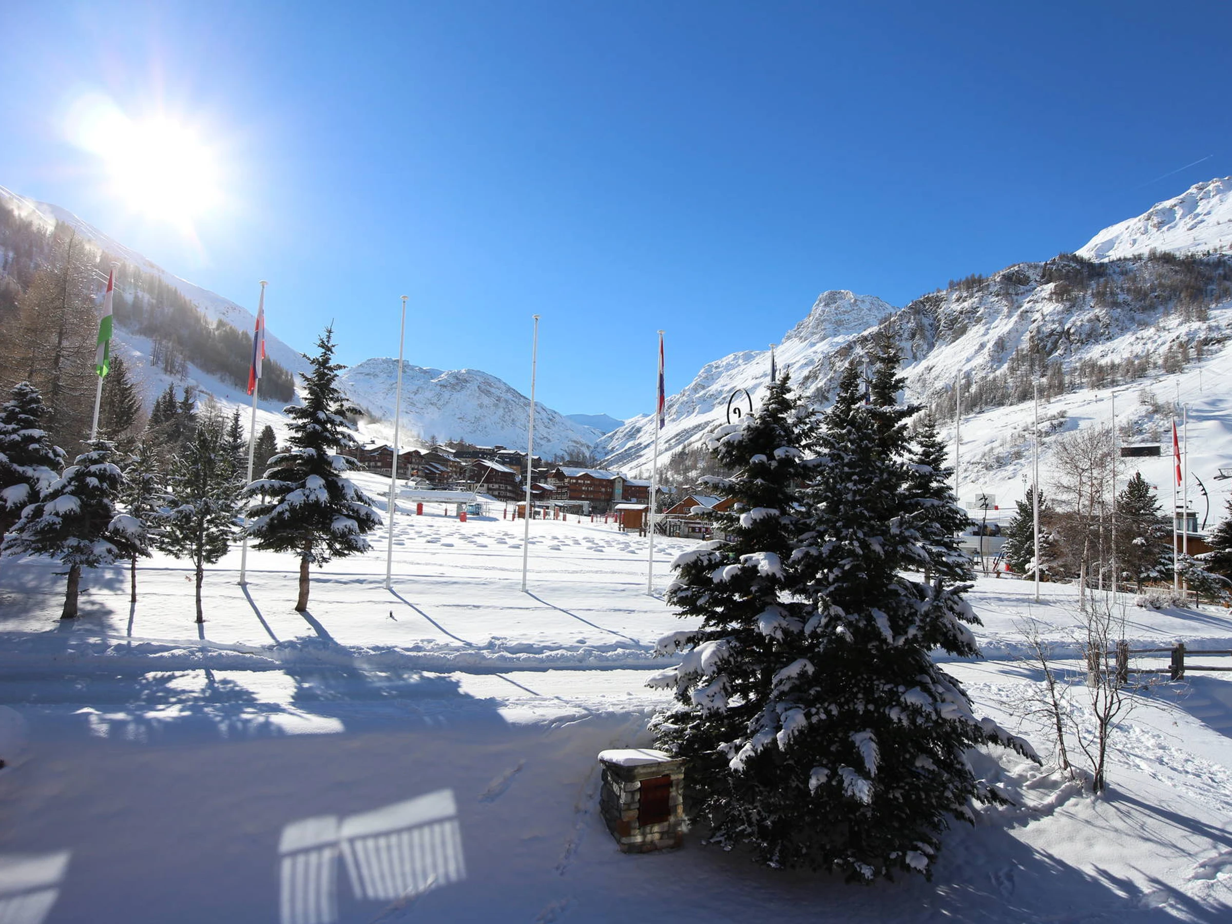 Petite copropriété sur le front de neige, skis aux pieds dans le cœur du village avec une magnifique vue sur la face de Bellevarde et sur Solaise.