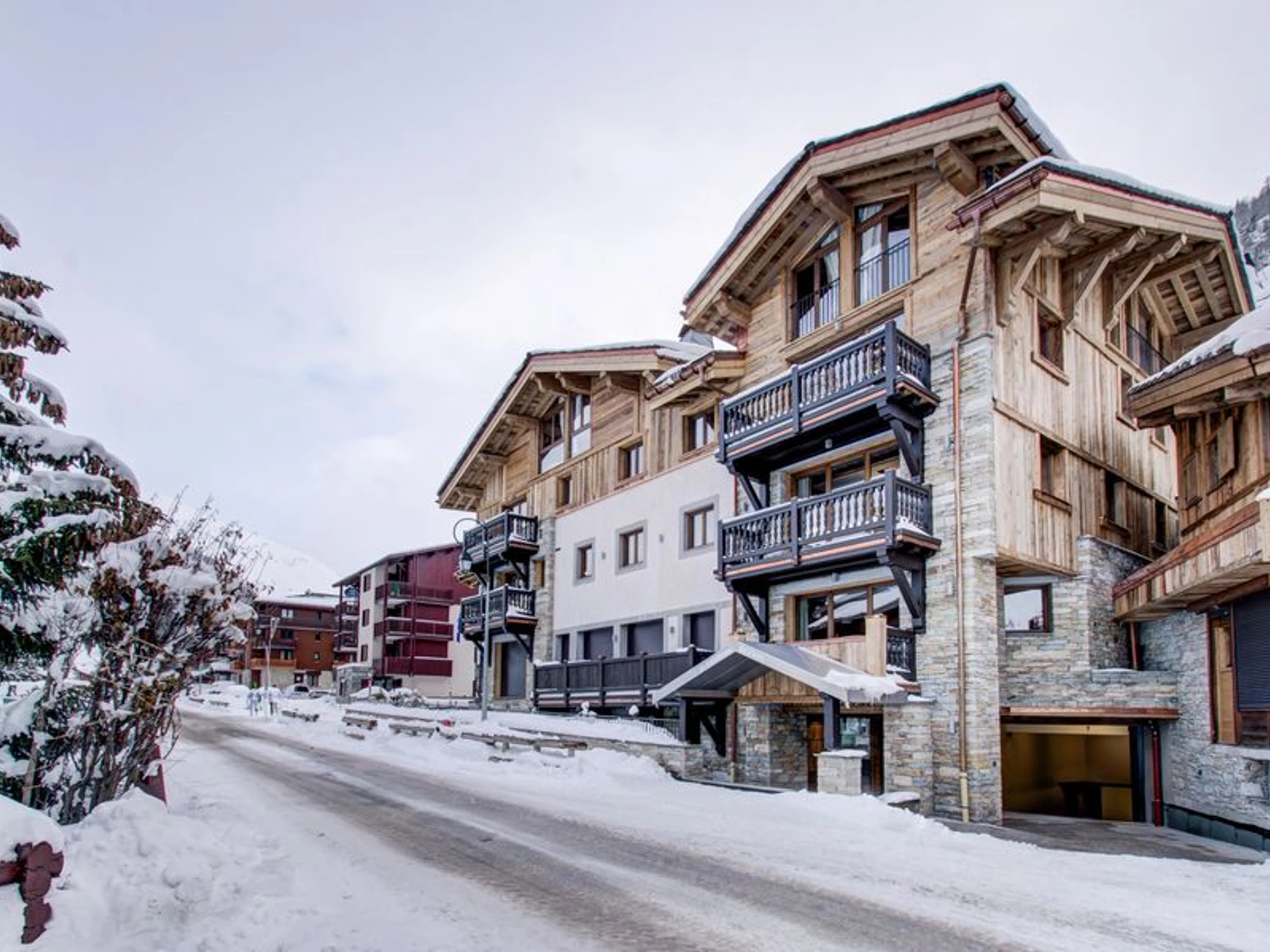 Ensemble d'appartements de prestige. Résidence La Canadienne. Hameau du Petit Alaska, proche centre de Val d'Isère, pistes et remontées. Appartements pour 8 à 10 personnes, avec hammam ou grand salon avec verrière donnant sur le village.. A vous de choisir !