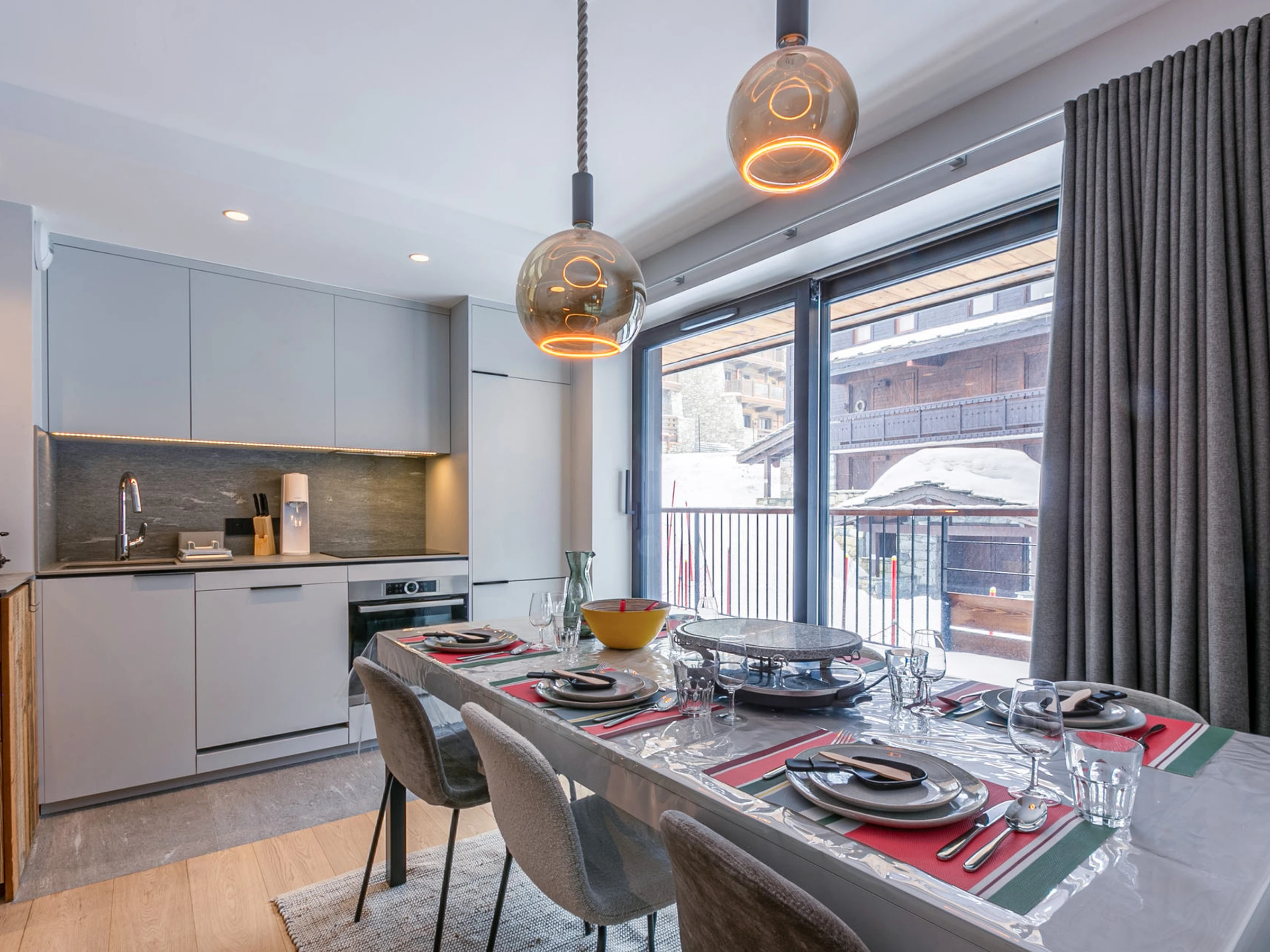 Equipée d'un lave-vaisselle, hotte aspirante, plaques induction, four, four micro-ondes, grand réfrigérateur, congélateur