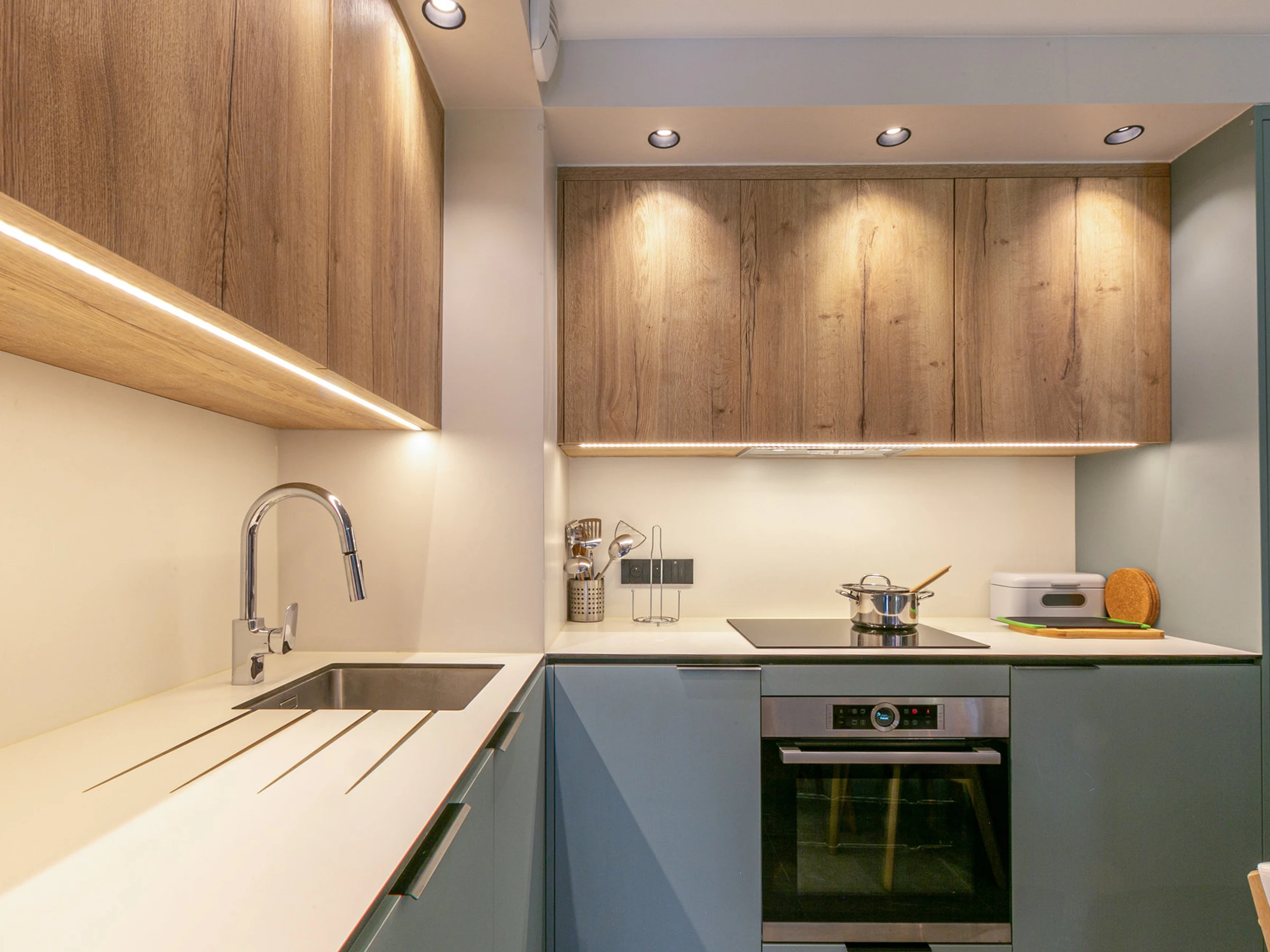 Equipée d'un lave-vaisselle, hotte aspirante, plaque induction, four, four micro-onde s, grand réfrigérateur, congélateur