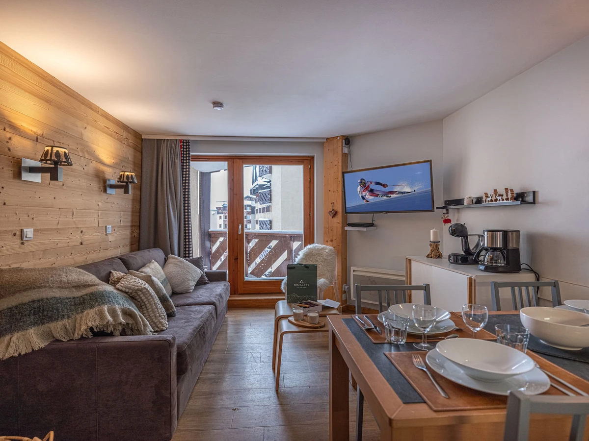 Appartement de 26 m² pour 4 personnes situé au cinquième étage de la résidence Machu Pichu aux pieds des pistes. Il dispose de tous les équipements indispensables, pour passer un agréable séjour à Val Thorens Le séjour est équipé d'un canapé lit et la cuisine équipée est ouverte sur le séjour. Le balcon exposé ouest permet de profiter du coucher de soleil sur les pistes. La chambre avec lits superposés dispose d'une troisième banquette pour plus de confort. Toutes les commodités sont à proximité de la résidence et le centre station station est facilement accessiblie via l'ascenceur public.