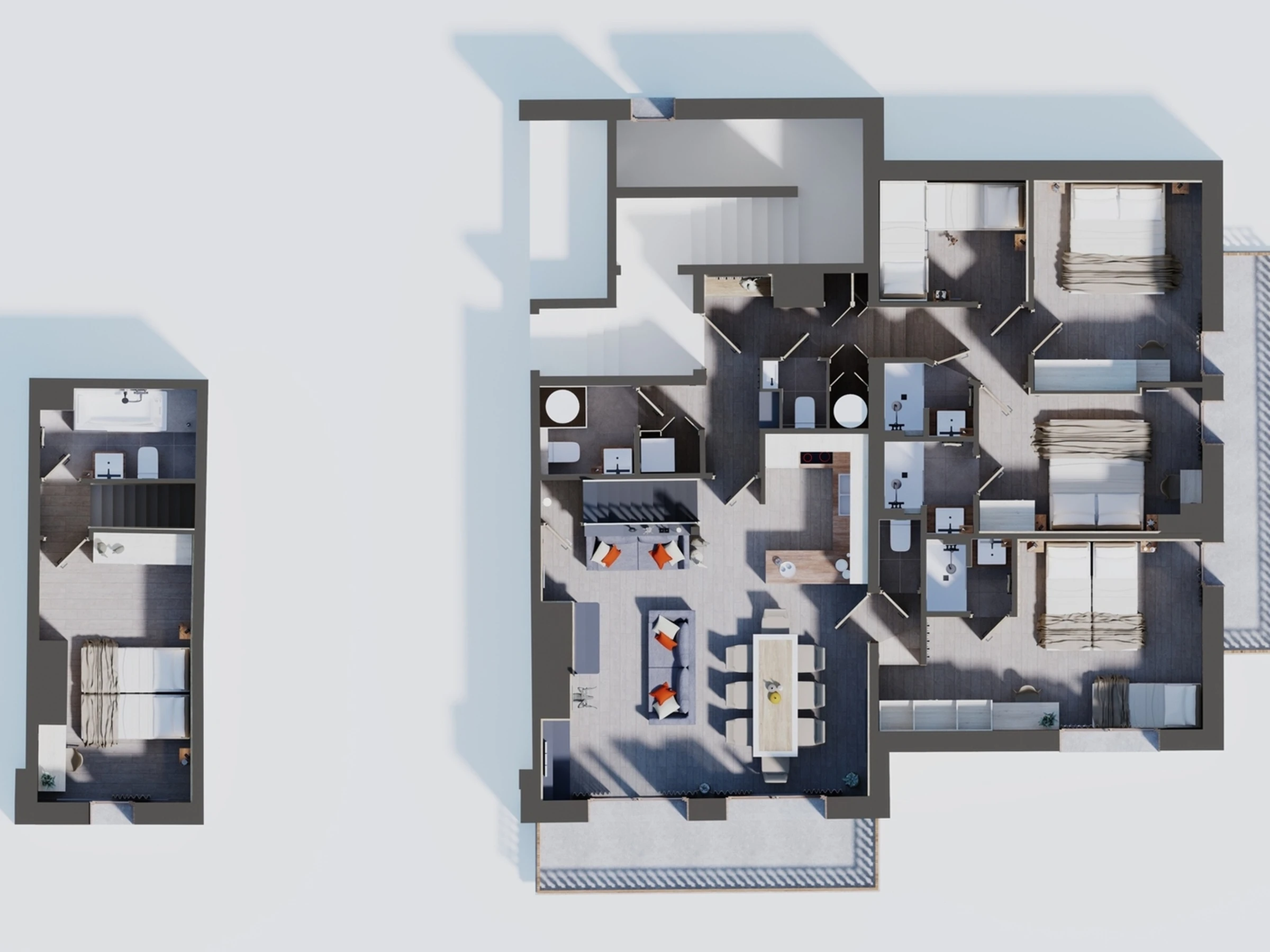 Parfait pour accueillir de grandes familles ou des groupes d’amis, il est agencé comme suit :