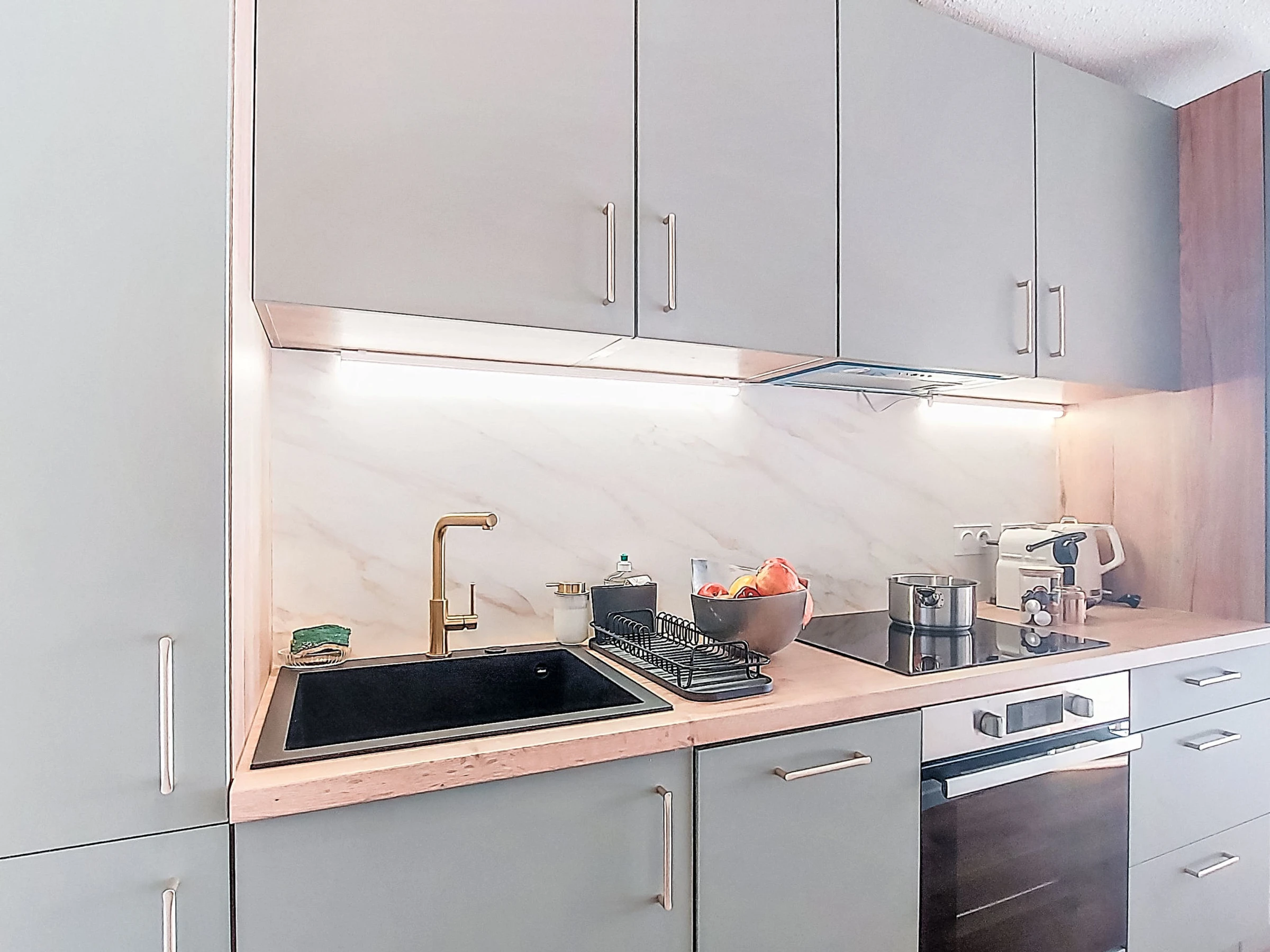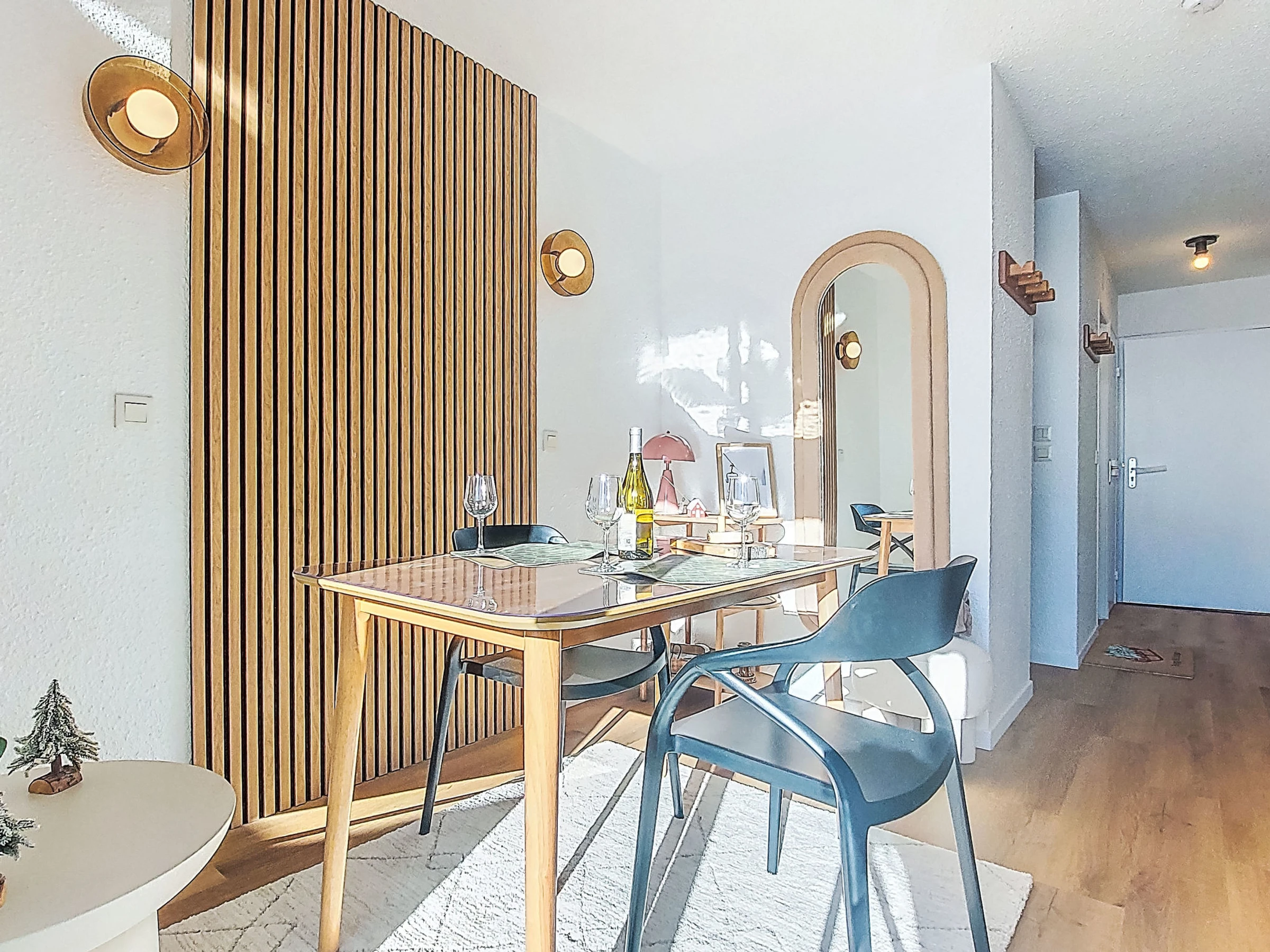 Apt 2 pièces 42 m2 au 7ème étage, situation sud. Partiellement rénové en 2025, aménagement confortable et moderne: séjour/salle à manger avec 1 divan-lit double (1 x 140 cm, longueur 190 cm), table pour les repas et TV. Sortie sur le balcon, orientée sud. Entrée avec coin-cuisine. Coin cuisine dans l'entrée (four, lave-vaisselle, 3 plaques à induction, bouilloire électrique, micro-ondes, cafetière électrique, Capsules pour machine à café (Nespresso) inclus). Salle de bains, WC séparé. À l'étage supérieur: (escalier en colimaçon) 1 grande chambre avec 1 lit double (1 x 140 cm, longueur 200 cm), chauffage électrique. Cabine avec 1 x 2 lits superposés (80 cm, longueur 190 cm), chauffage électrique. Douche/WC. Sol en parquet. Petit balcon 3 m2, situation sud. Très belle vue sur les montagnes, la vallée, les pistes de ski et la localité. A disposition: coffre-fort, chaise haute pour enfant, lit bébé (en sus), sèche-cheveux. Internet (Connexion WIFI, en sus). Veuillez noter: logement non-fumeur. Annonce d'un particulier (art 155, IV du CGI). [hidden]