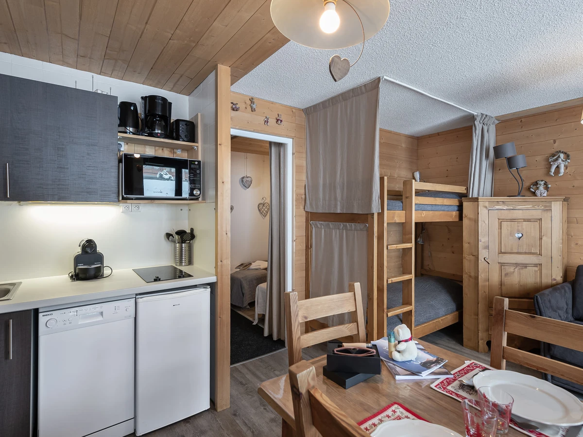 Bienvenue dans ce charmant appartement situé dans la Résidence Roc de Peclet à Val Thorens, idéalement situé aux pieds des pistes pour une expérience de ski inoubliable. Cet appartement douillet peut accueillir jusqu'à 4 personnes grâce à ses deux coins montagne, où vous pourrez vous détendre après une journée bien remplie sur les pistes. La décoration traditionnelle en bois et les touches montagnardes appartent une ambiance chaleureuse et authentique à l'espace.