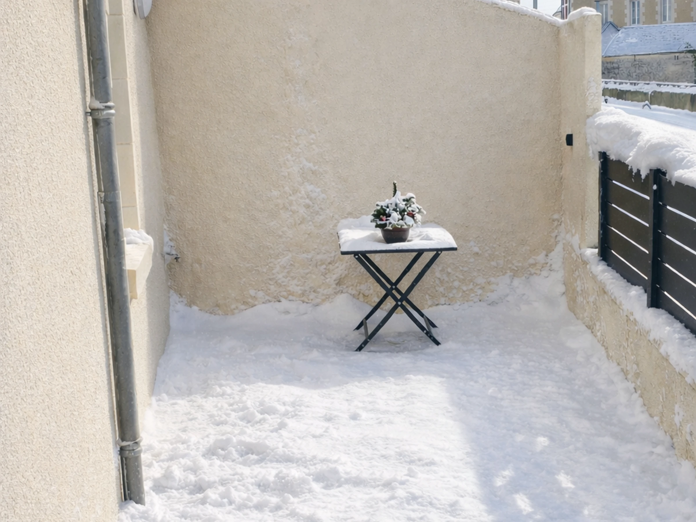 À l’extérieur, une courette privative, entièrement close, avec salon de jardin, idéale pour profiter des beaux jours.