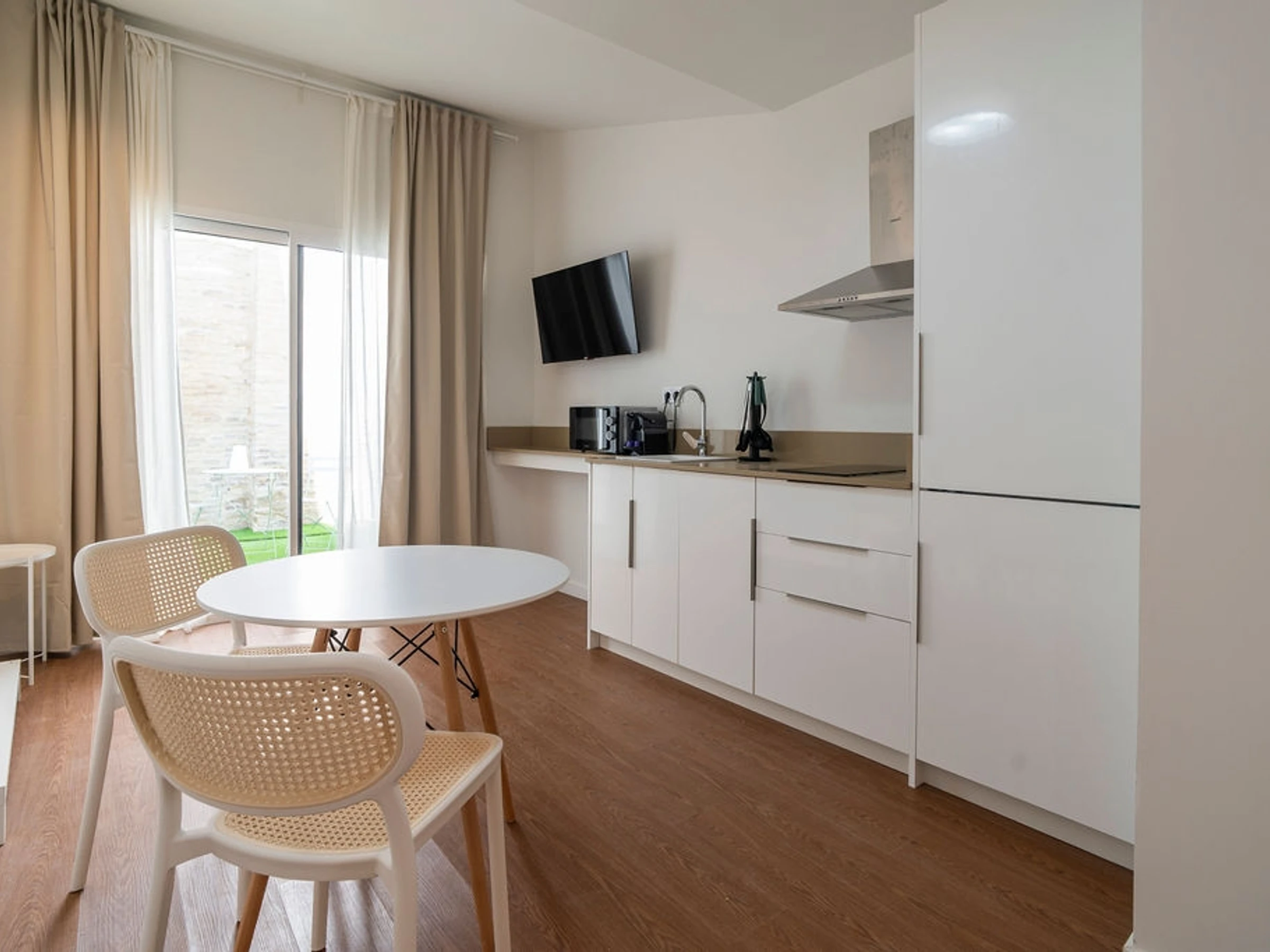 L'appartement comprend une terrasse privée, la climatisation, un lit double, une connexion Wi-Fi haut débit et une Smart TV, ce qui en fait un lieu idéal pour se détendre ou même travailler à distance. Vous trouverez également une table à manger avec des chaises et un portant pour ranger vos vêtements.