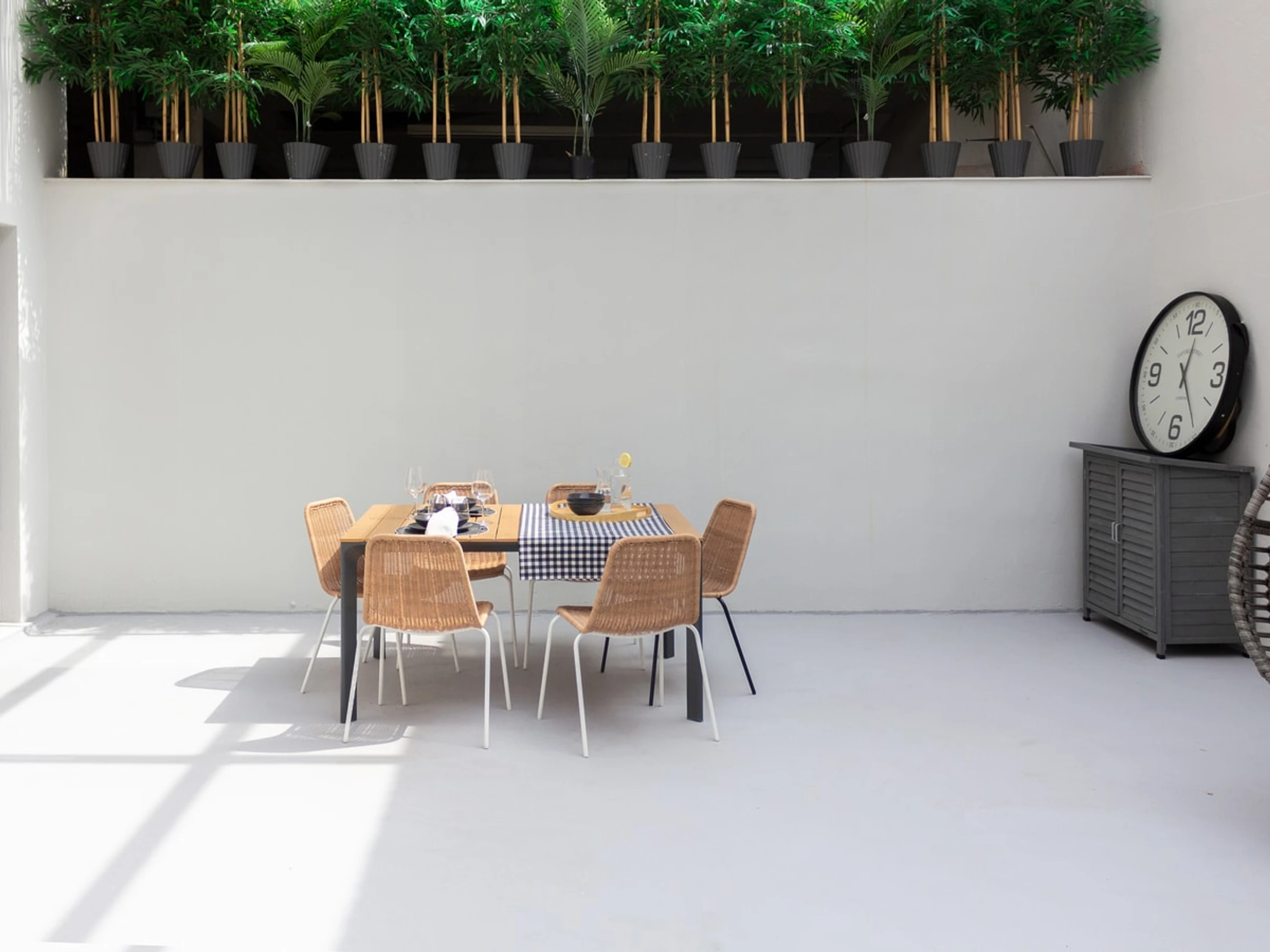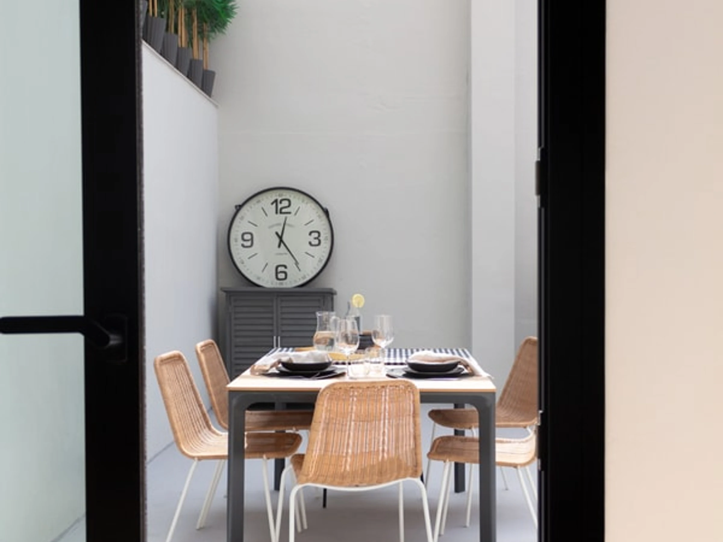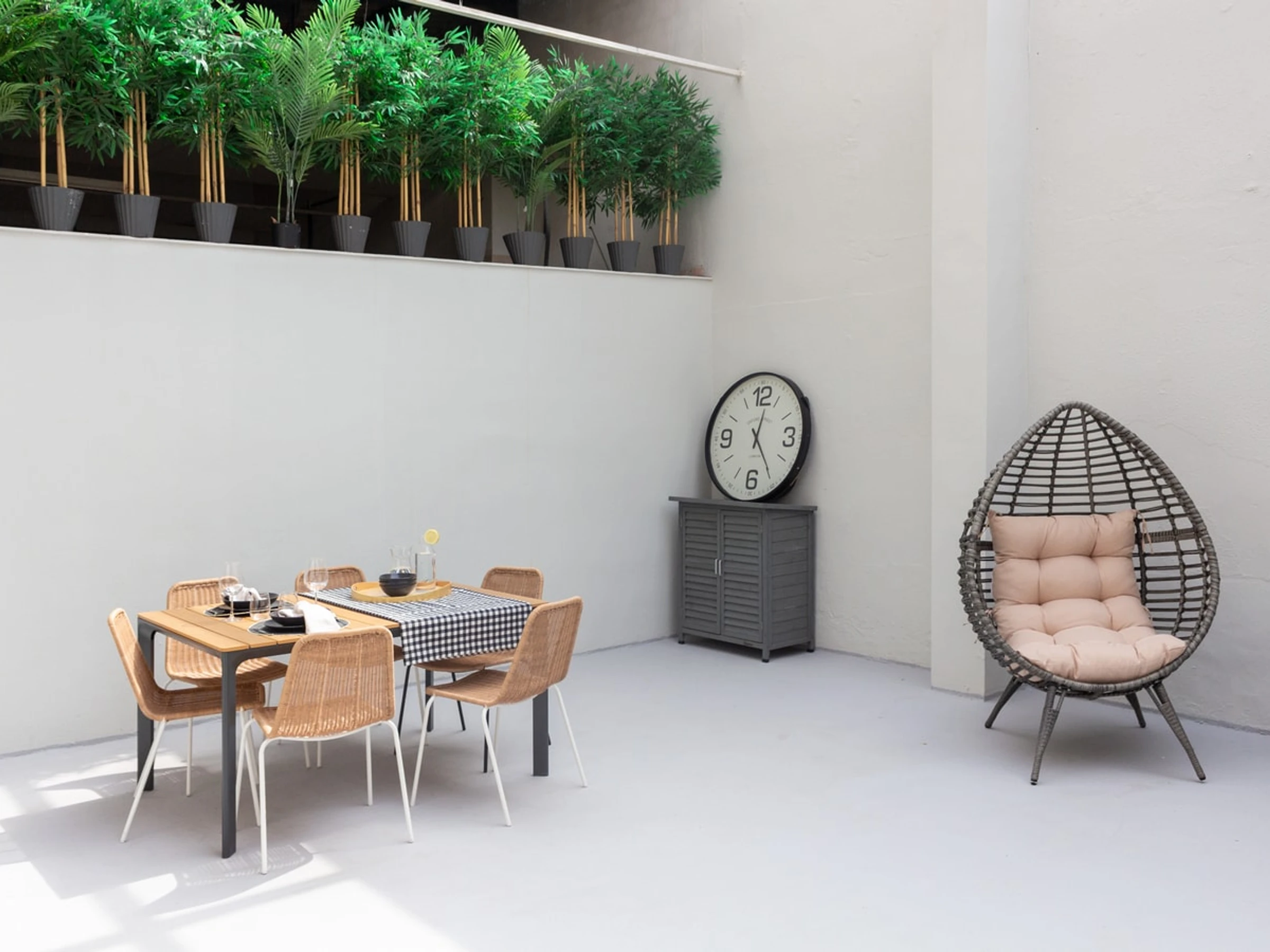 La terrasse ensoleillée offre un espace agréable pour se détendre, savourer un café ou s'imprégner de l'atmosphère animée de Valence.