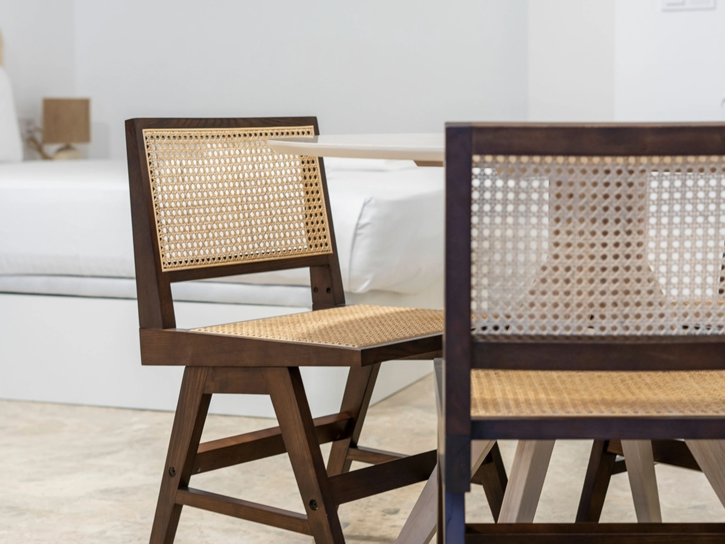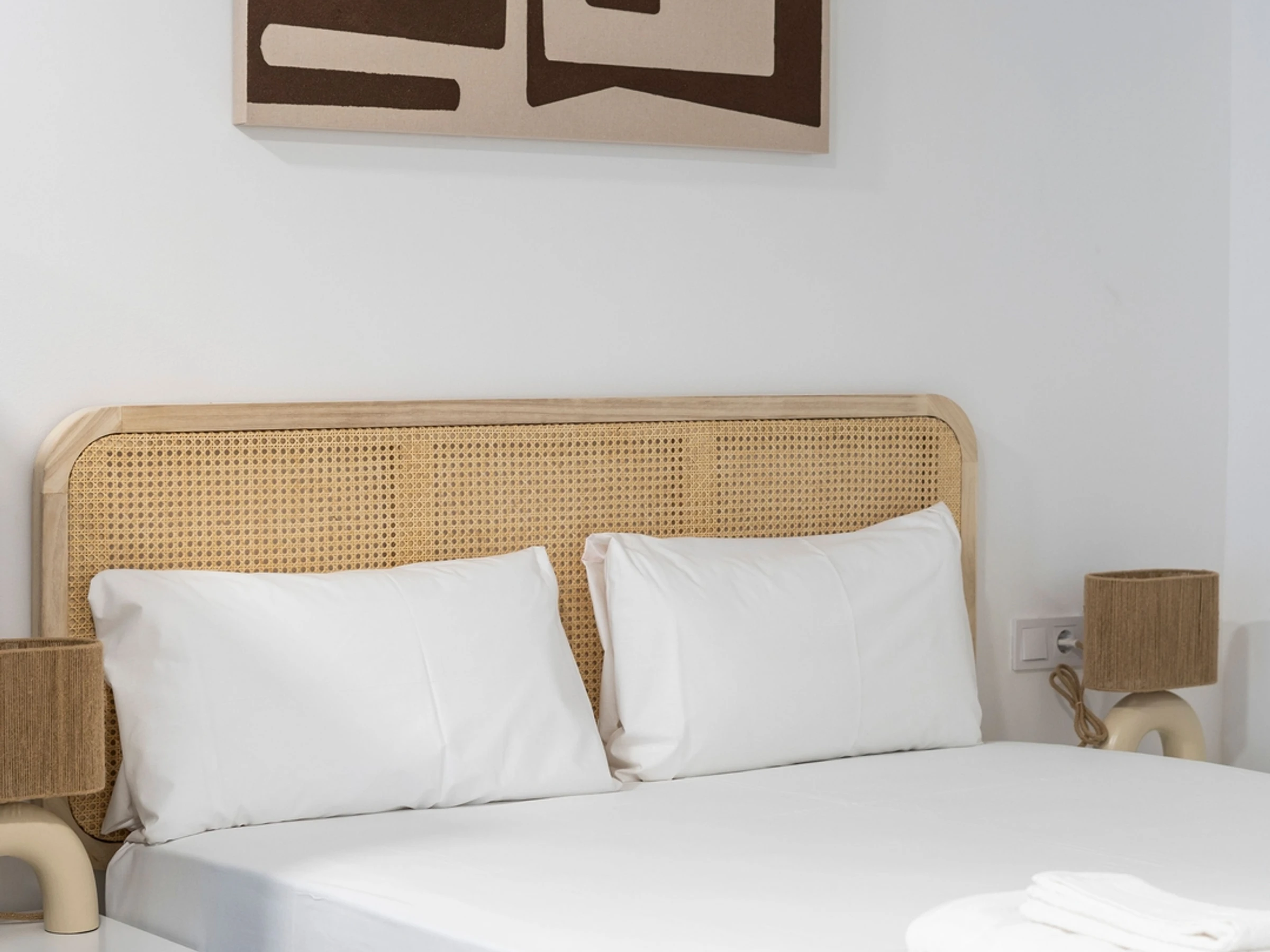 La décoration du studio intègre des matériaux naturels tels que le rotin tressé, typique de la culture valencienne, lui conférant chaleur et personnalité.