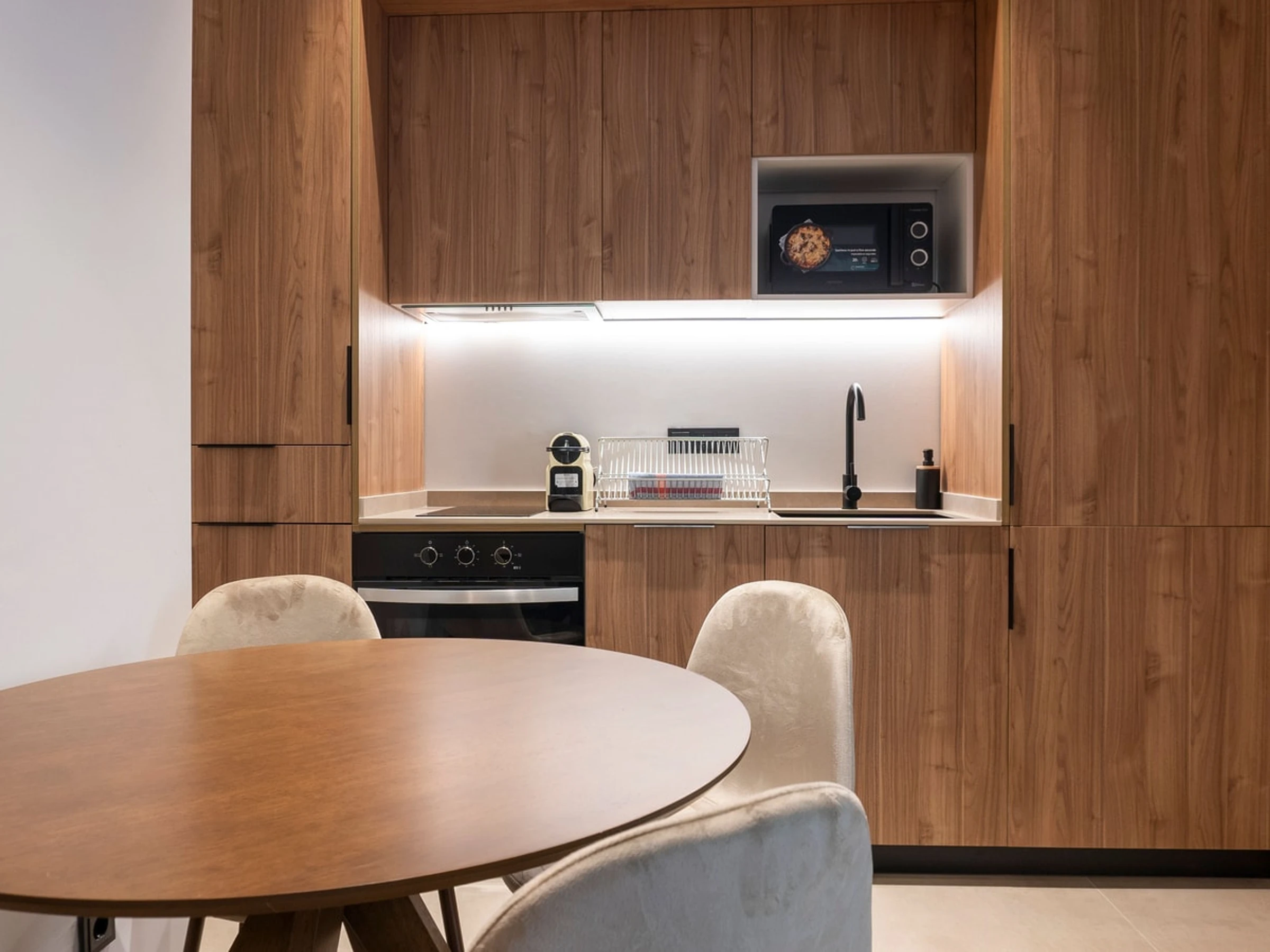 La cuisine est entièrement équipée avec tous les appareils nécessaires, notamment une machine à café Nespresso pour savourer un délicieux café chaque matin, un micro-ondes pour réchauffer rapidement vos repas et une bouilloire électrique pour préparer votre thé préféré à tout moment de la journée.