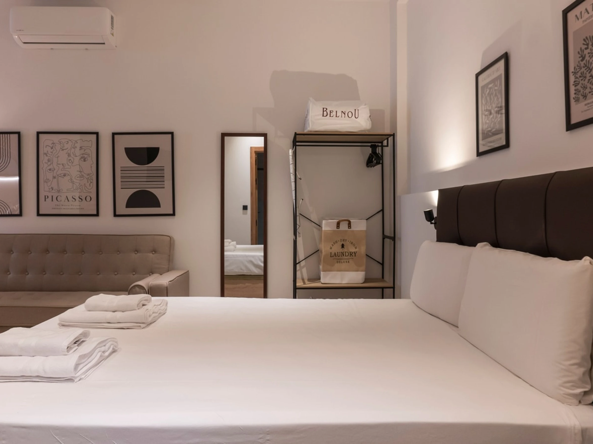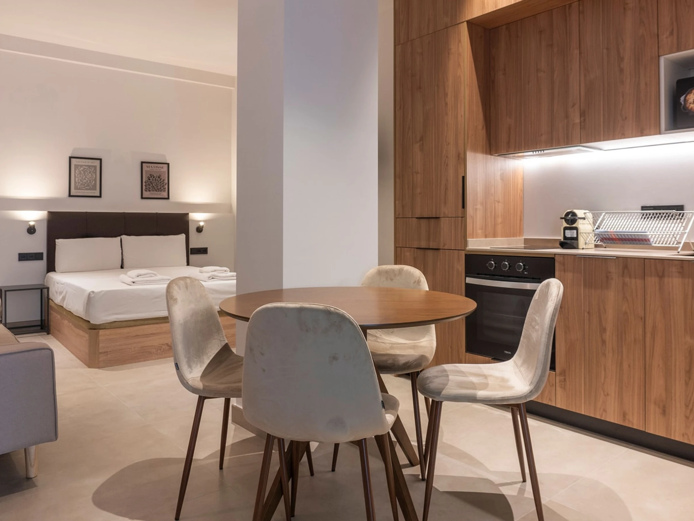 Le studio peut accueillir trois personnes, grâce à un canapé-lit confortable et un grand lit queen-size pour des nuits reposantes.
