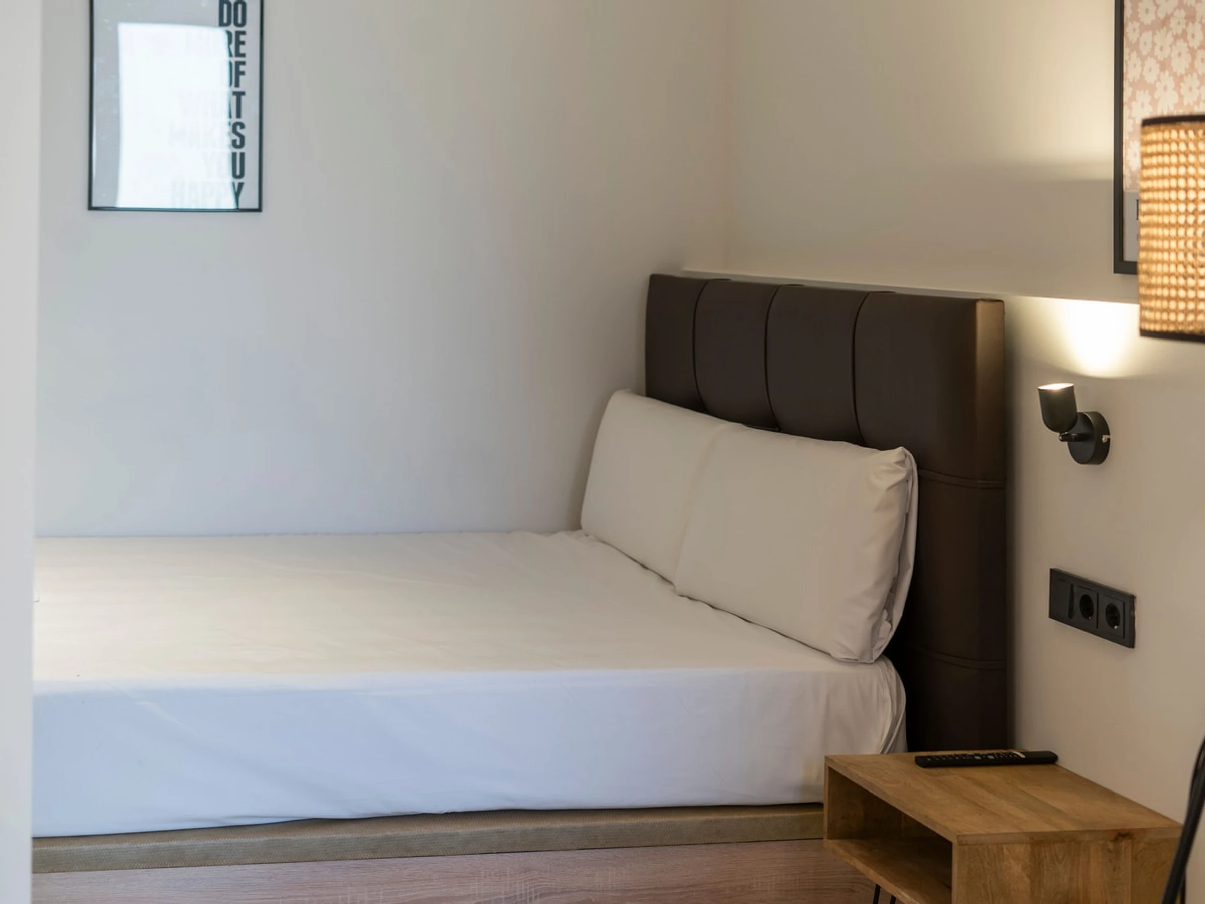 Le studio peut accueillir trois personnes, grâce à un canapé-lit confortable et un grand lit queen-size pour des nuits reposantes.