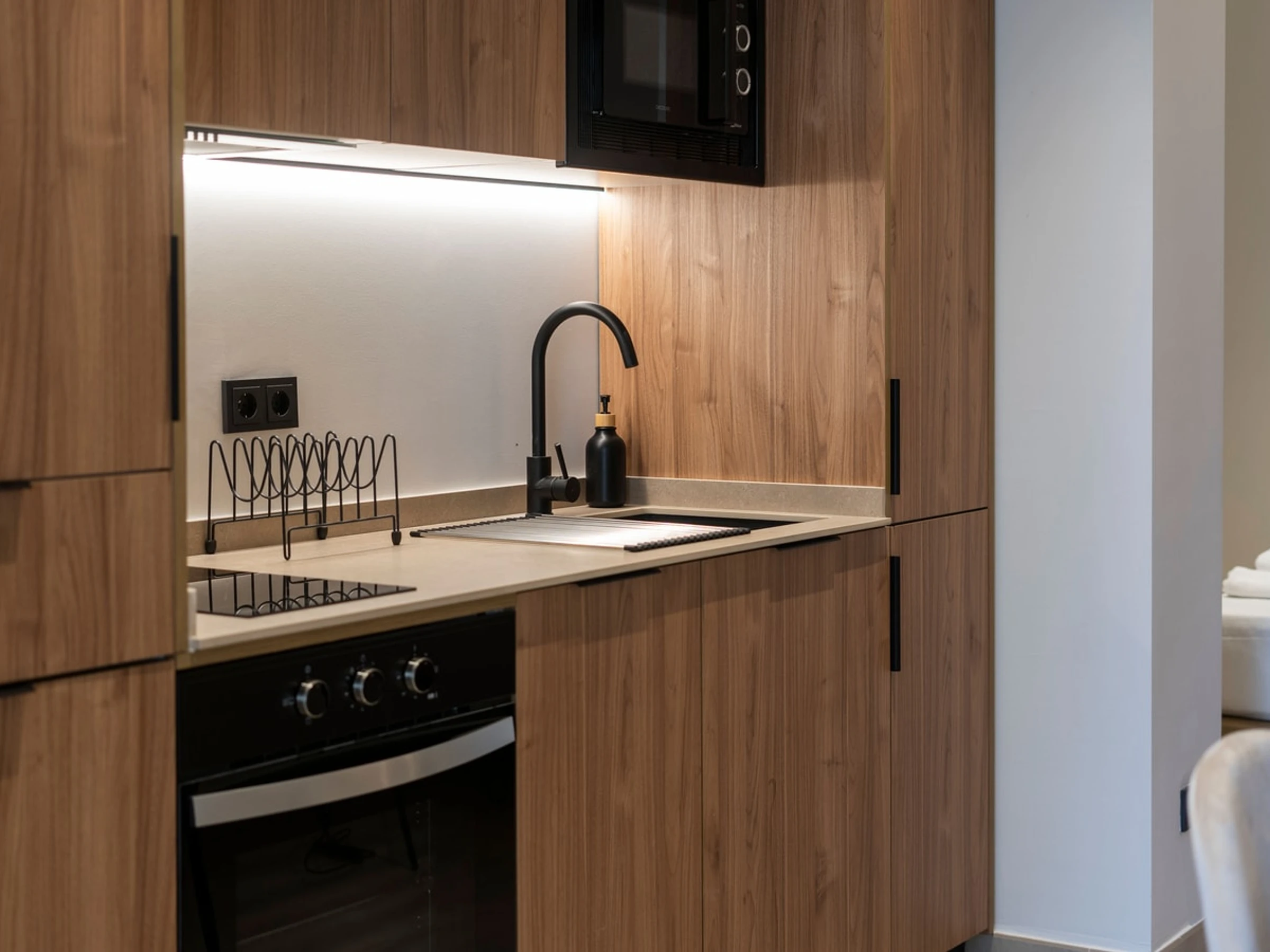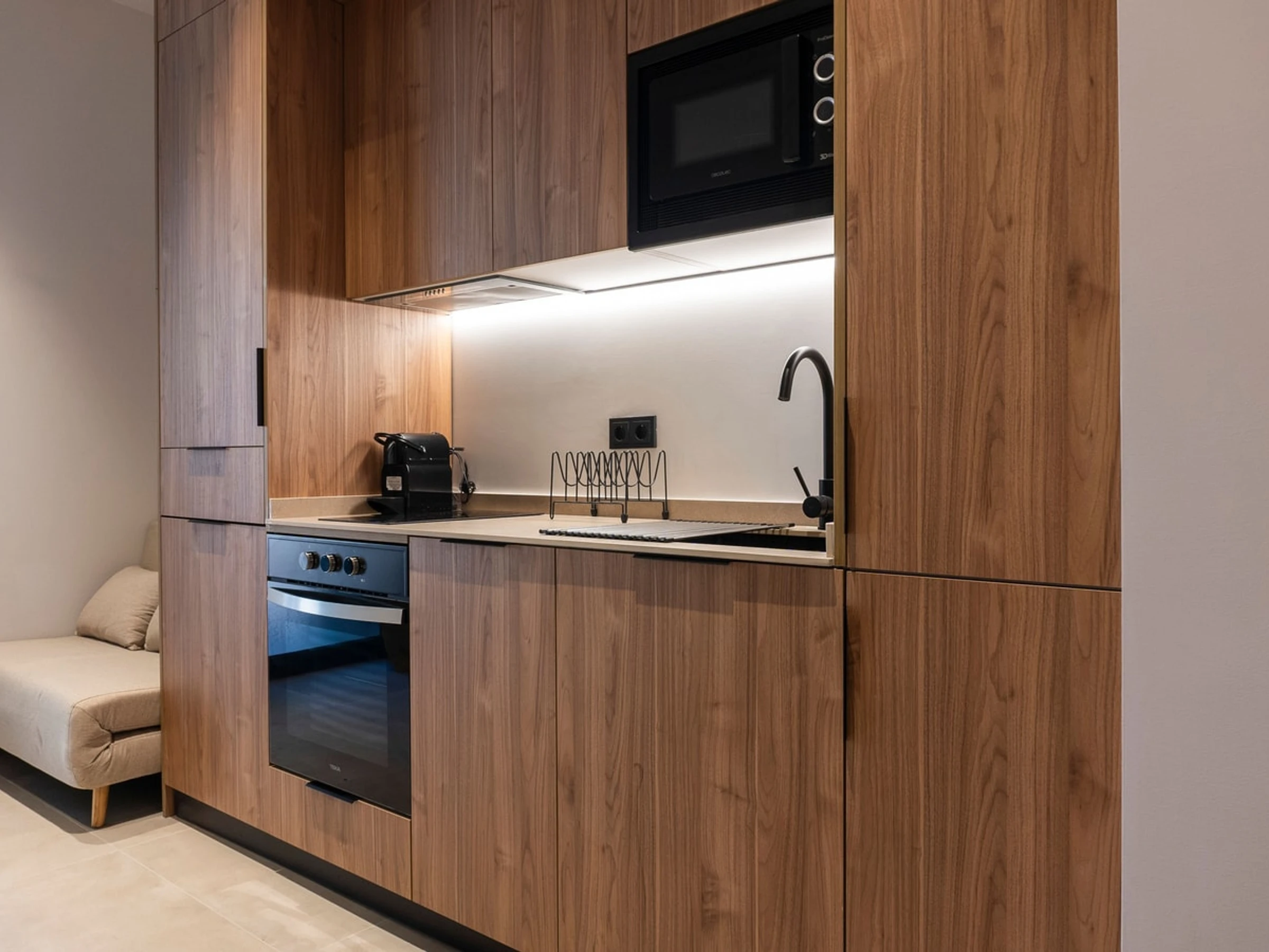 La cuisine est entièrement équipée avec tous les appareils nécessaires, notamment une machine à café Nespresso pour savourer un délicieux café chaque matin, un micro-ondes pour réchauffer rapidement vos repas et une bouilloire électrique pour préparer votre thé préféré à tout moment de la journée.