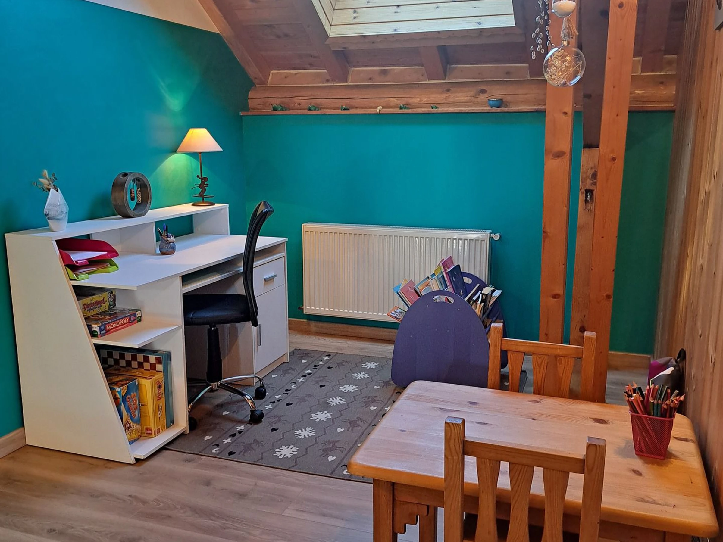 Mezzanine (Niv +3/ 17m²/ ouverte sur un coin lecture/ Sud) : 1 canapé convertible (160x200cm)