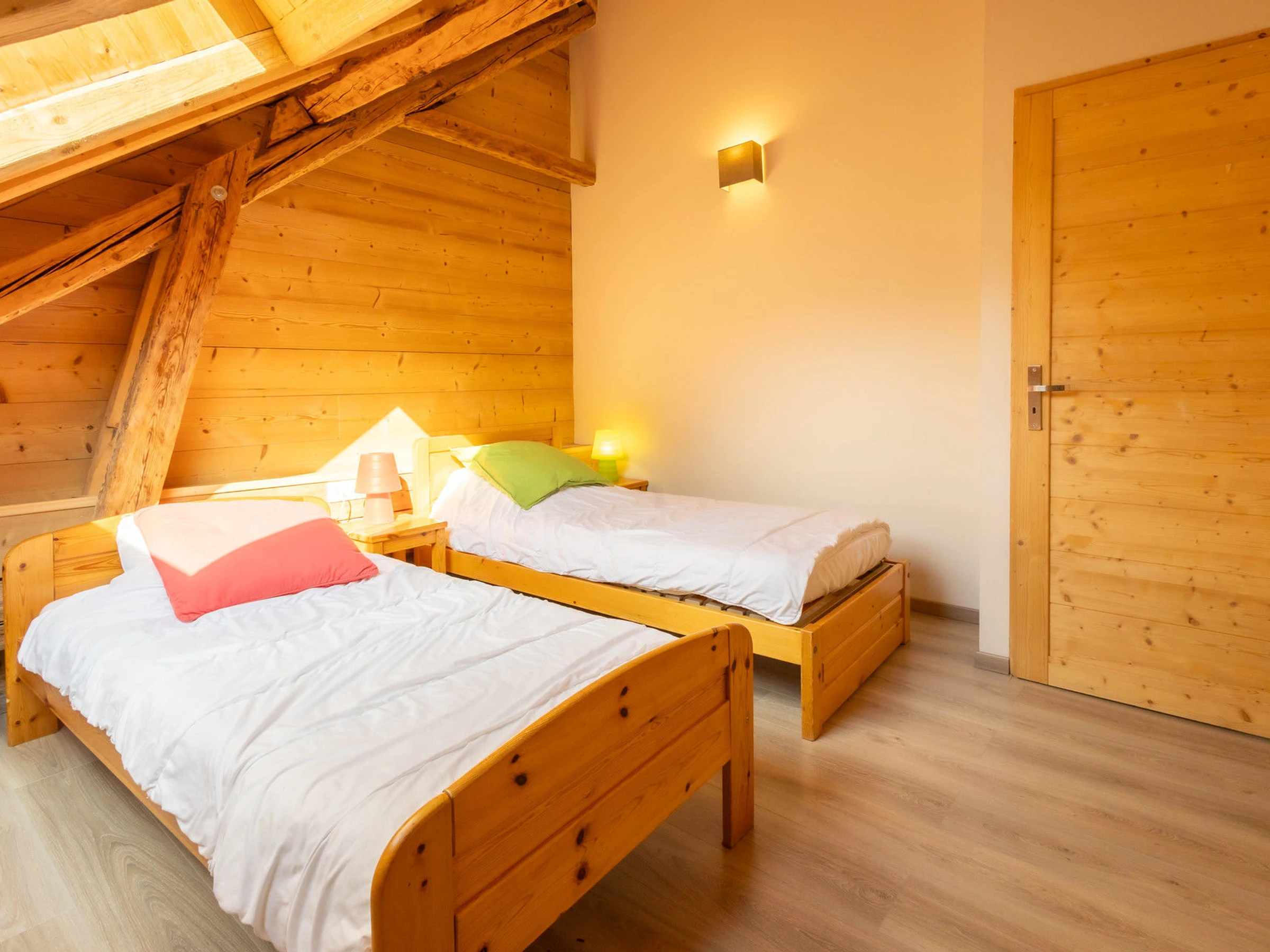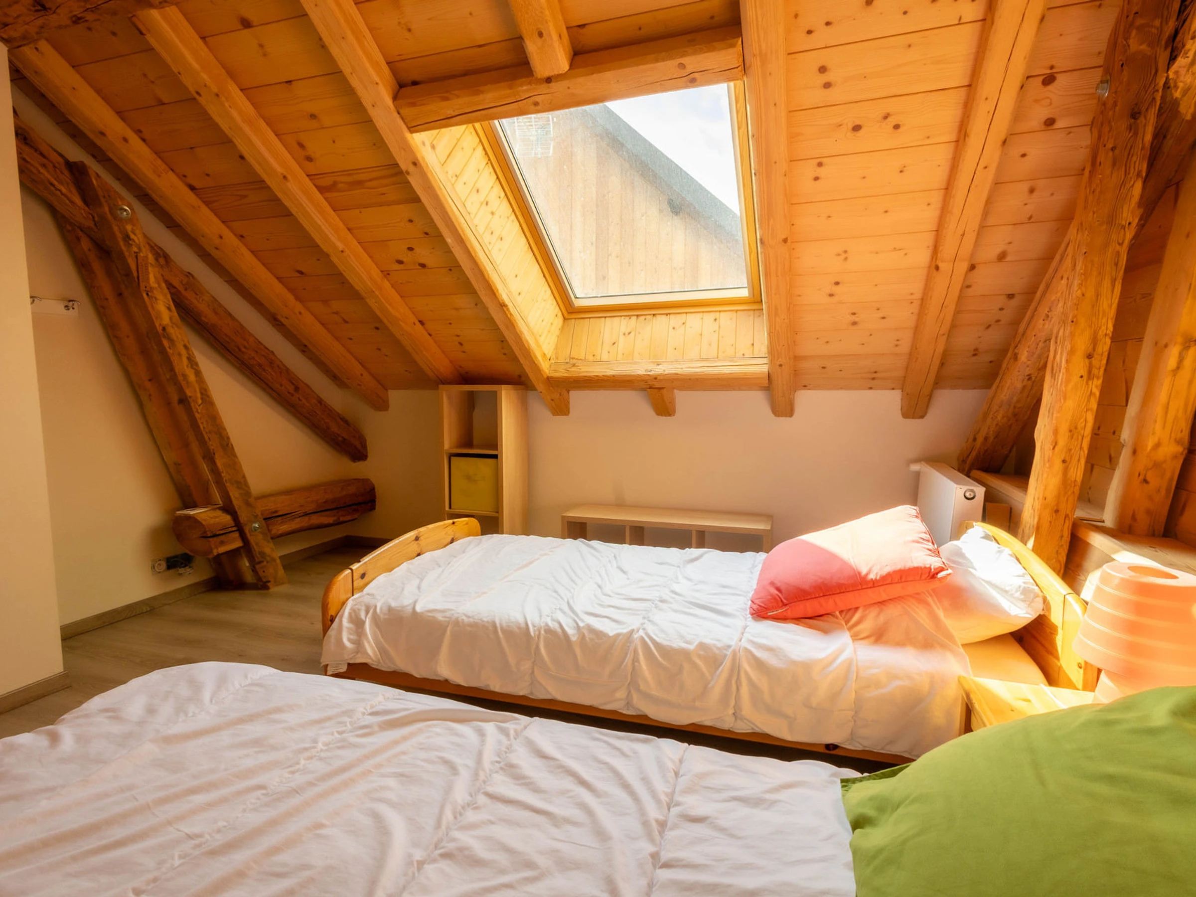 Chambre 1 (10m²/ Vélux Est) : 2 lits simples (2x 90x190cm)