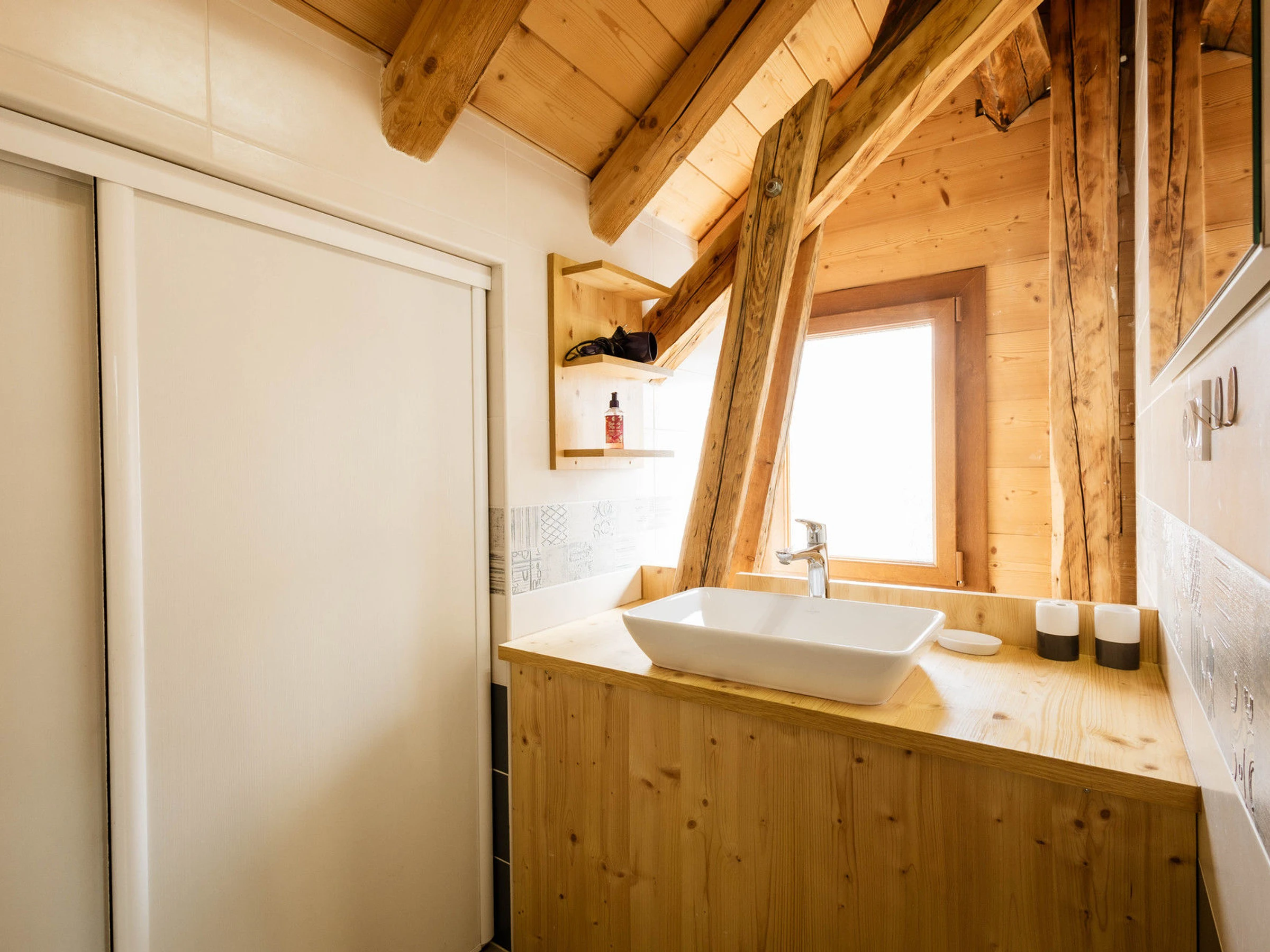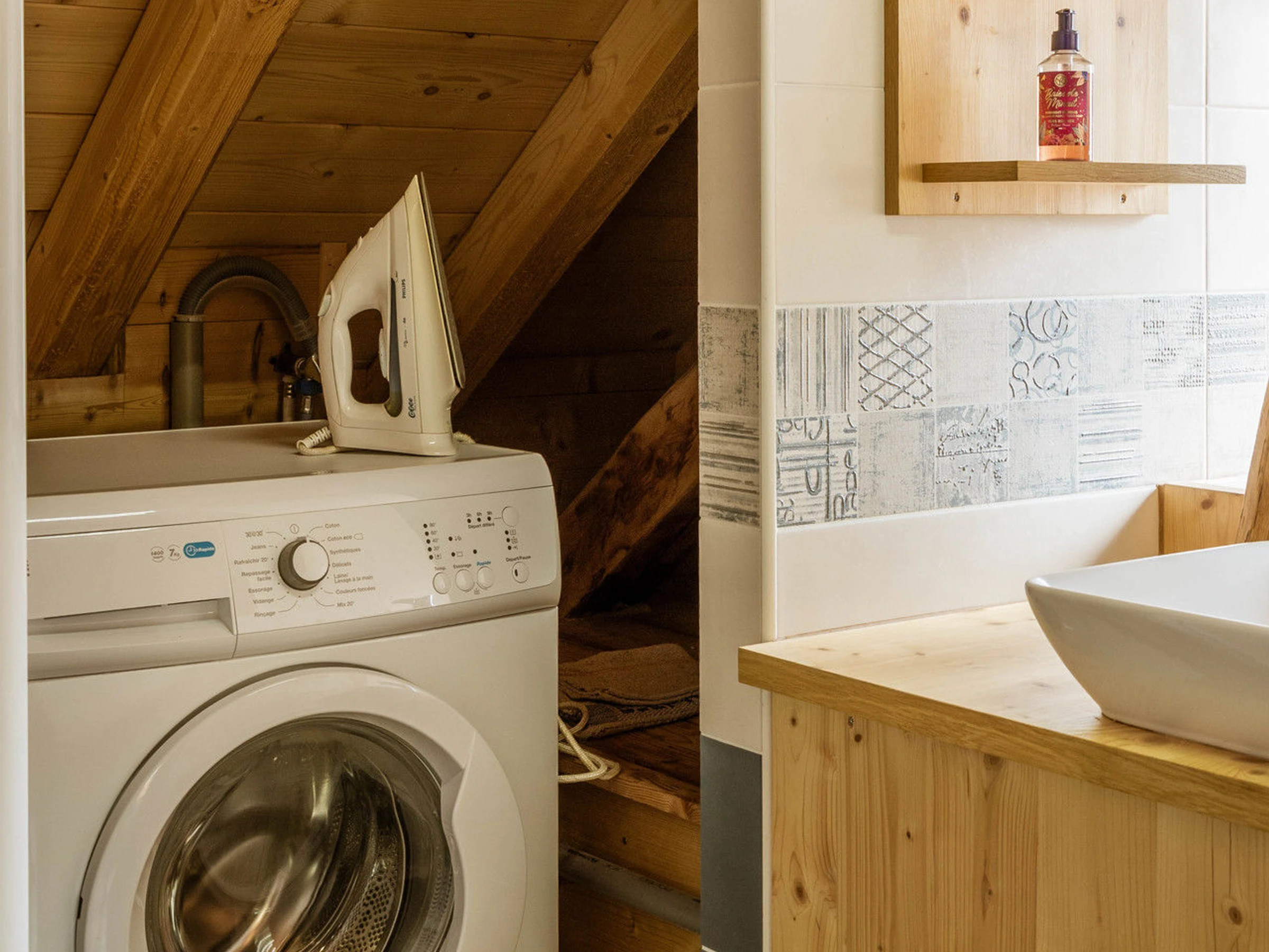 Salle d'eau : lavabo, douche, sèche-cheveux et lave-linge. WC indépendant.