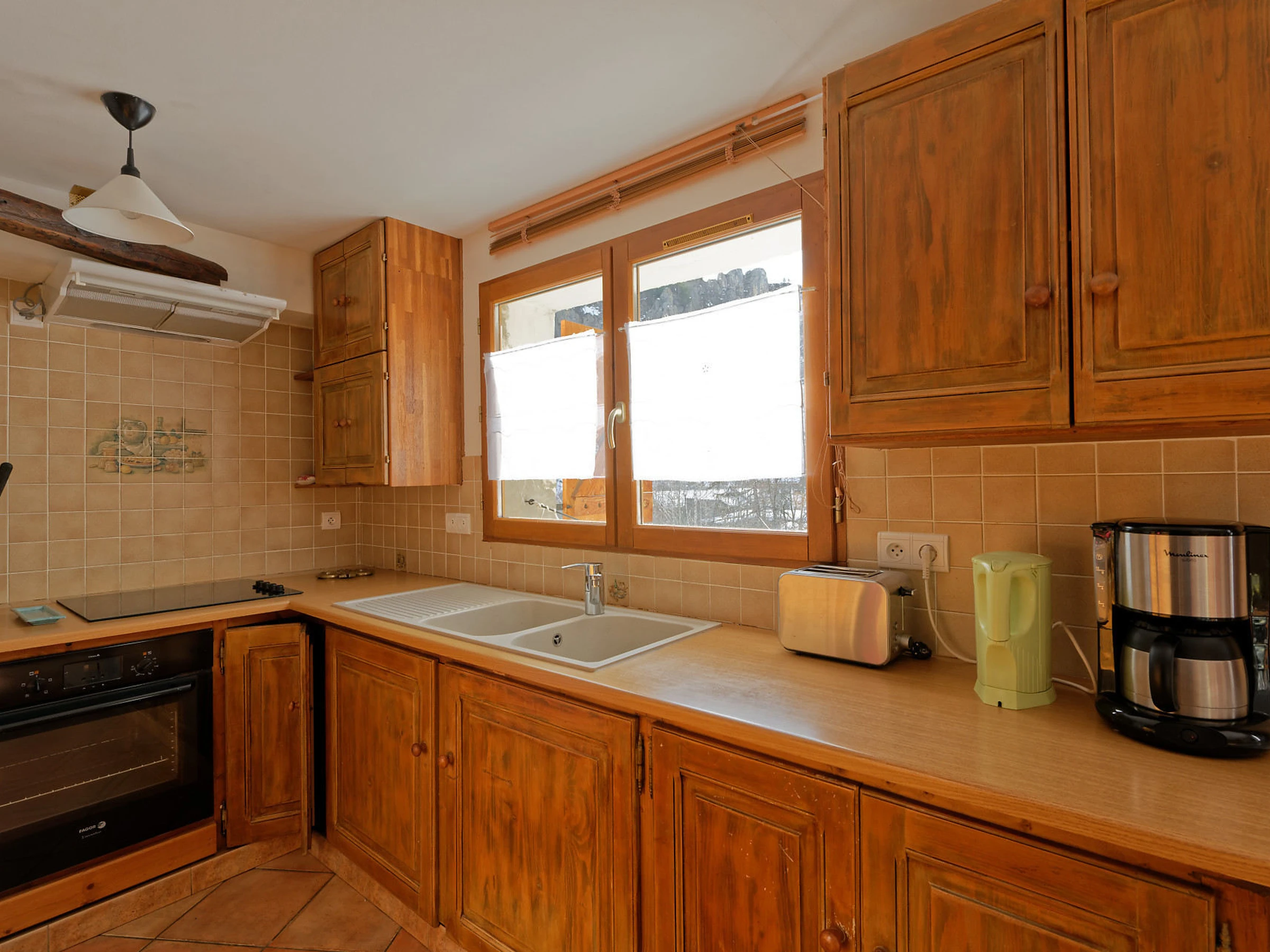 - Coin cuisine : four, plaque vitrocéramique (4 foyers), réfrigérateur (168L)/congélateur (39L), micro-ondes, lave-vaisselle, lave-linge