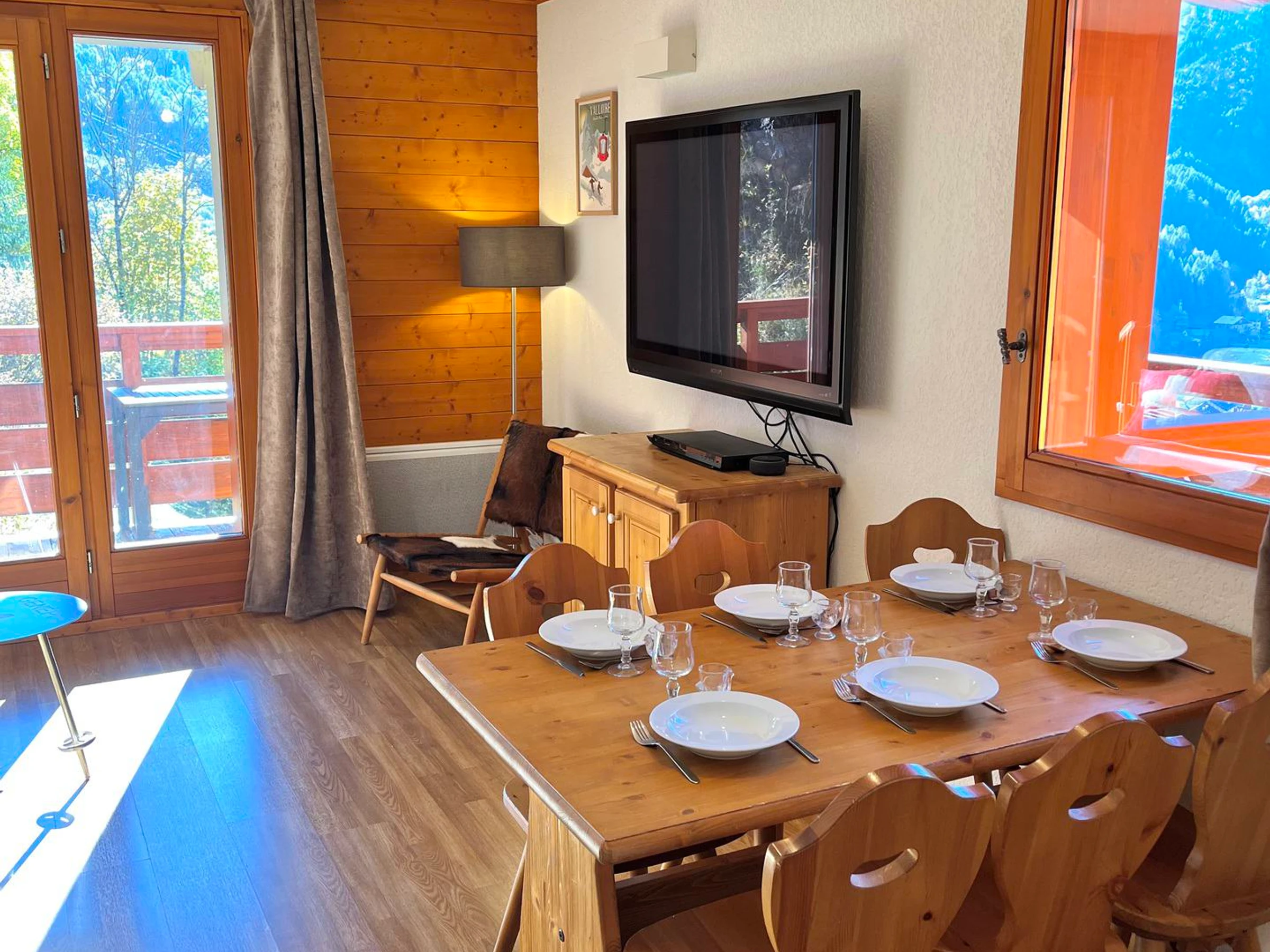 Animaux non admis. Linge de lit et de toilette non inclus. Ménage de fin de séjour inclus. Casier à skis individuel n°200. Ascenseur. Balcon d’angle avec salon de jardin. Une place de parking extérieure (n°200).