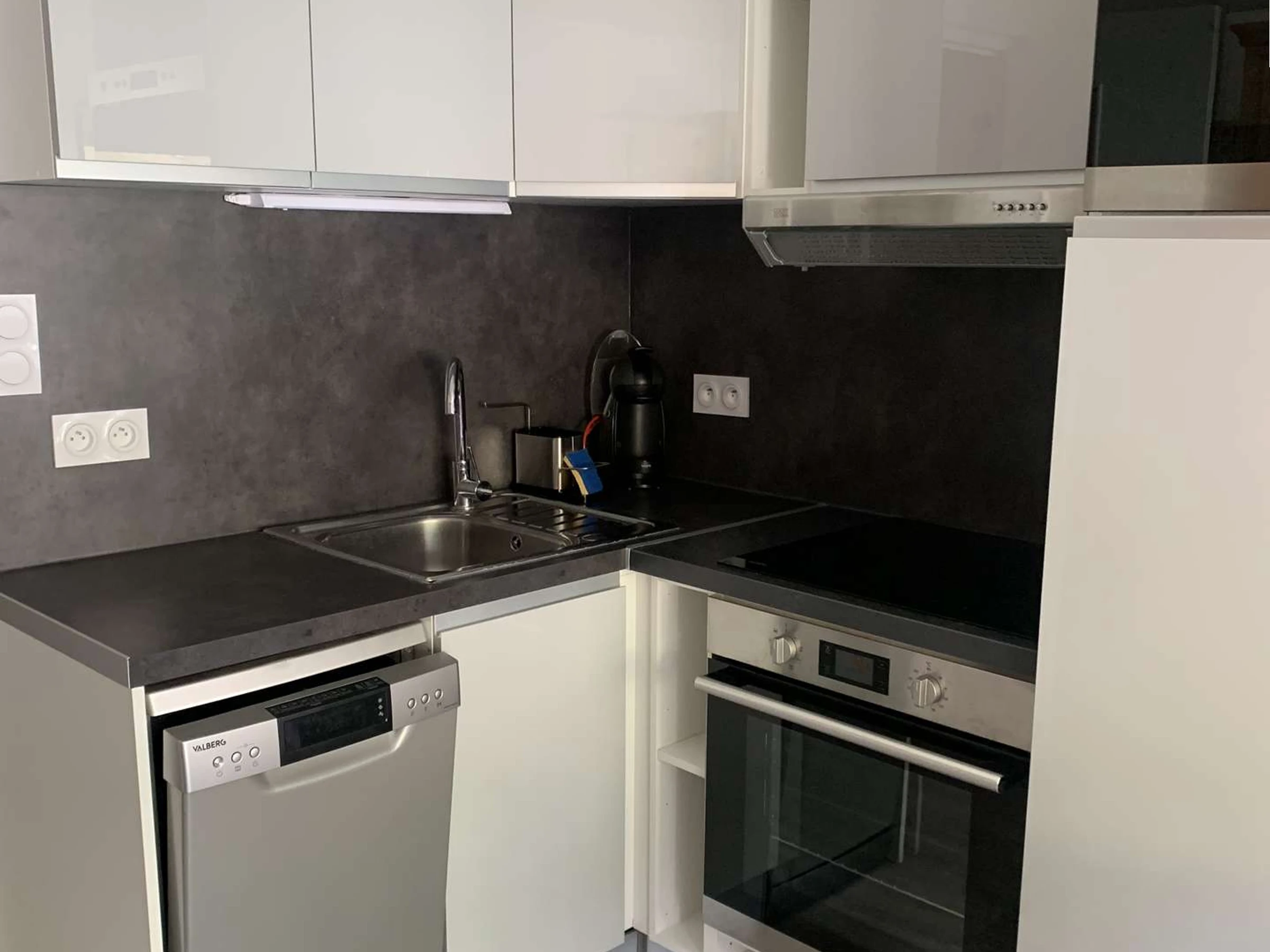 Coin cuisine/séjour : plaques induction 3 feux , four, réfrigérateur 175 L, micro-ondes grill, lave-vaisselle.1 cafetière Dolce Gusto, 1 cafetière filtre, 1 grille pain, bouilloire. Télévision, balcon EST