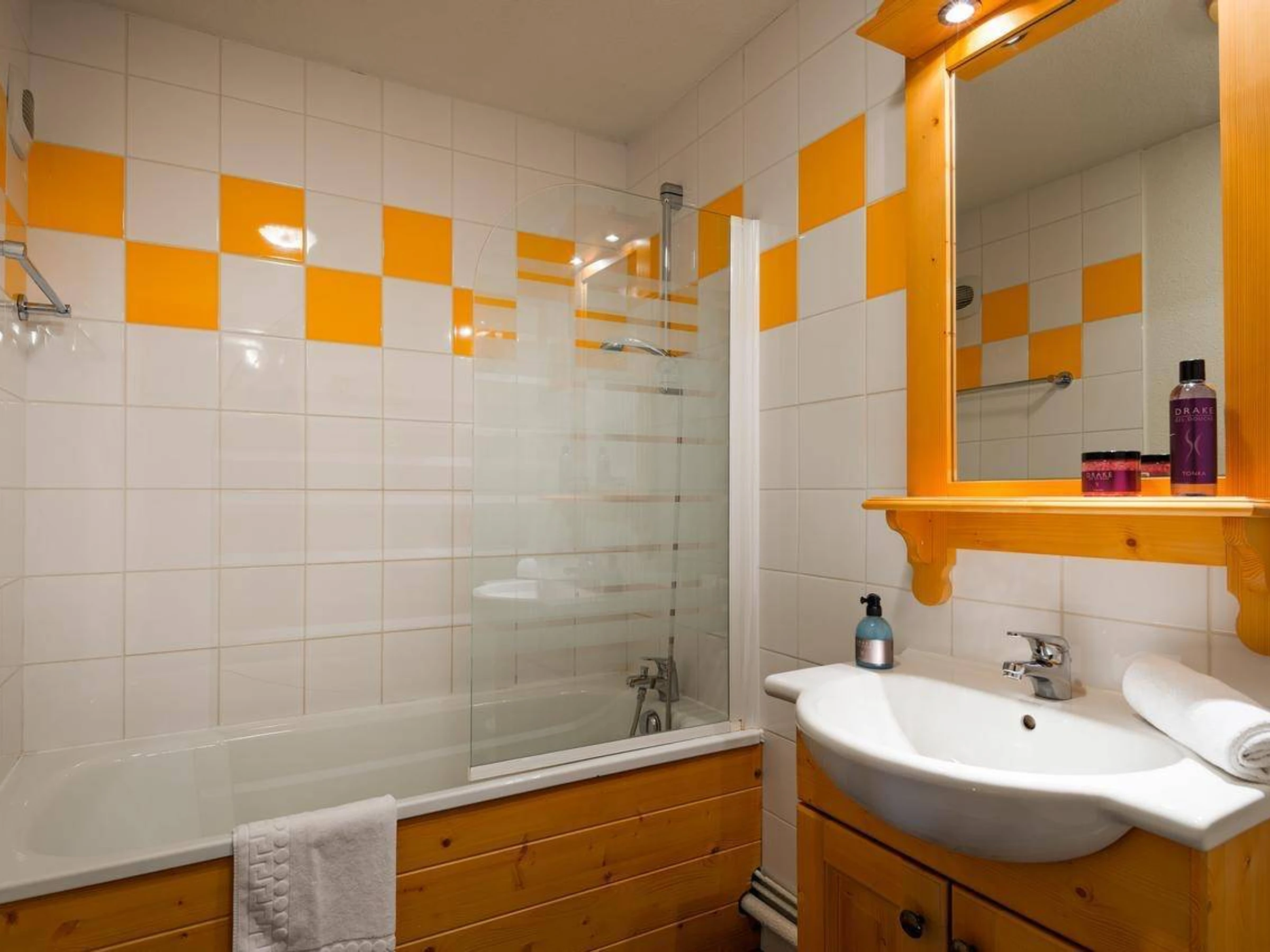 Salle de bains : lavabo, baignoire