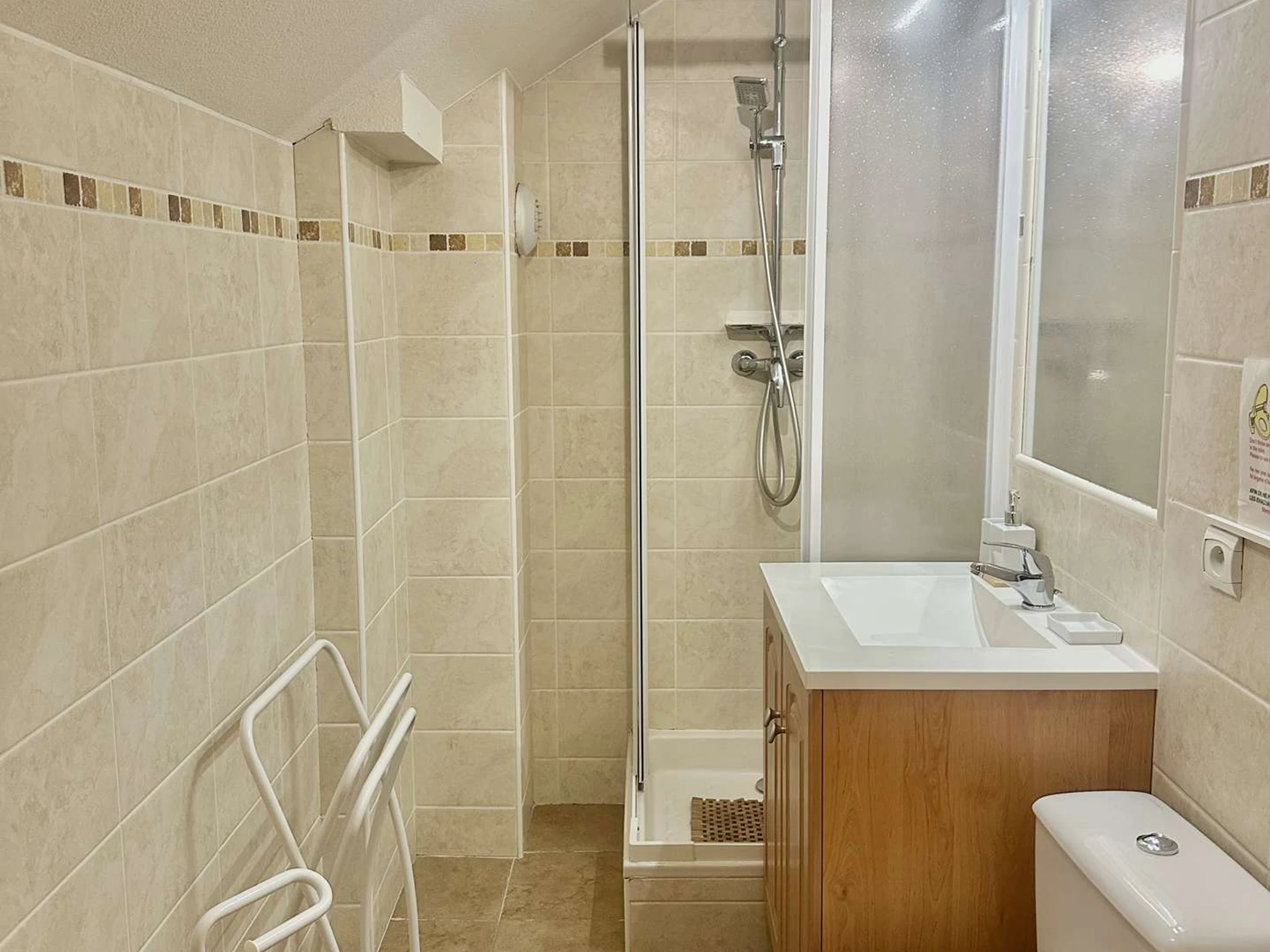 A l'étage, 1 chambre, salle d'eau avec douche, lavabo et wc incorporé