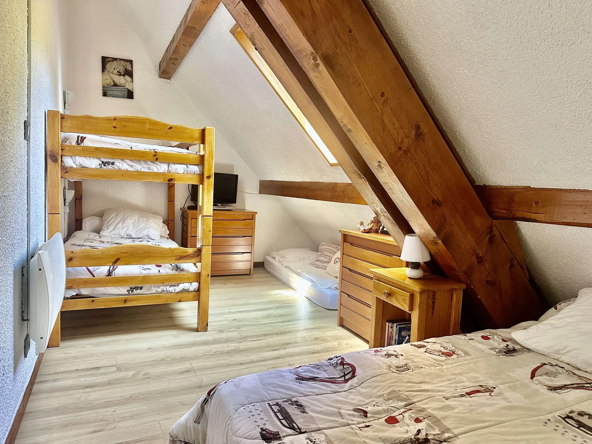 Niveau 2 une chambre avec 1 lit 140 x 190, 2 lits superposés 80 x 190.Télévision
