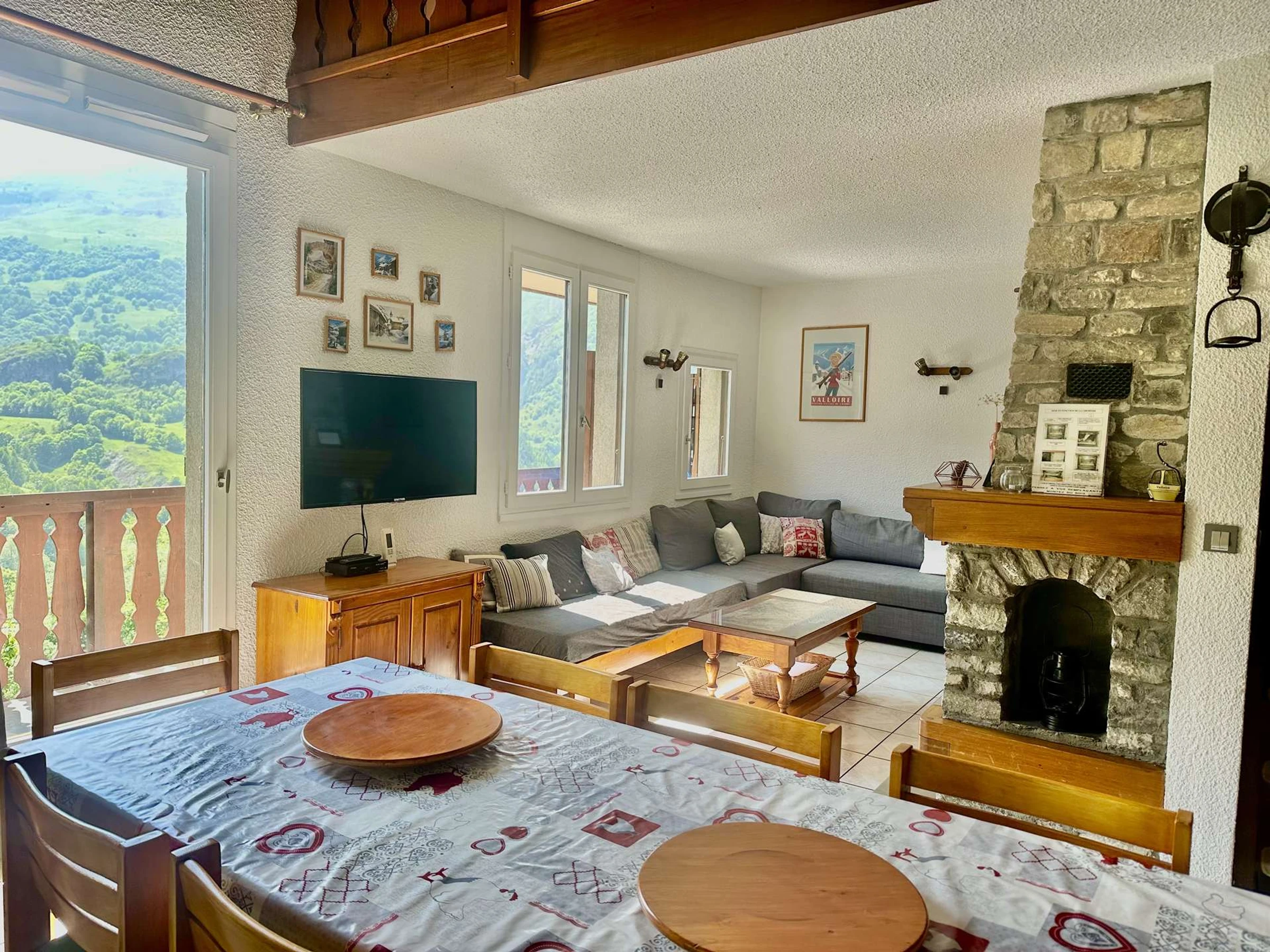 Salon avec cheminée (bois mis à disposition ), télévision, DVD.