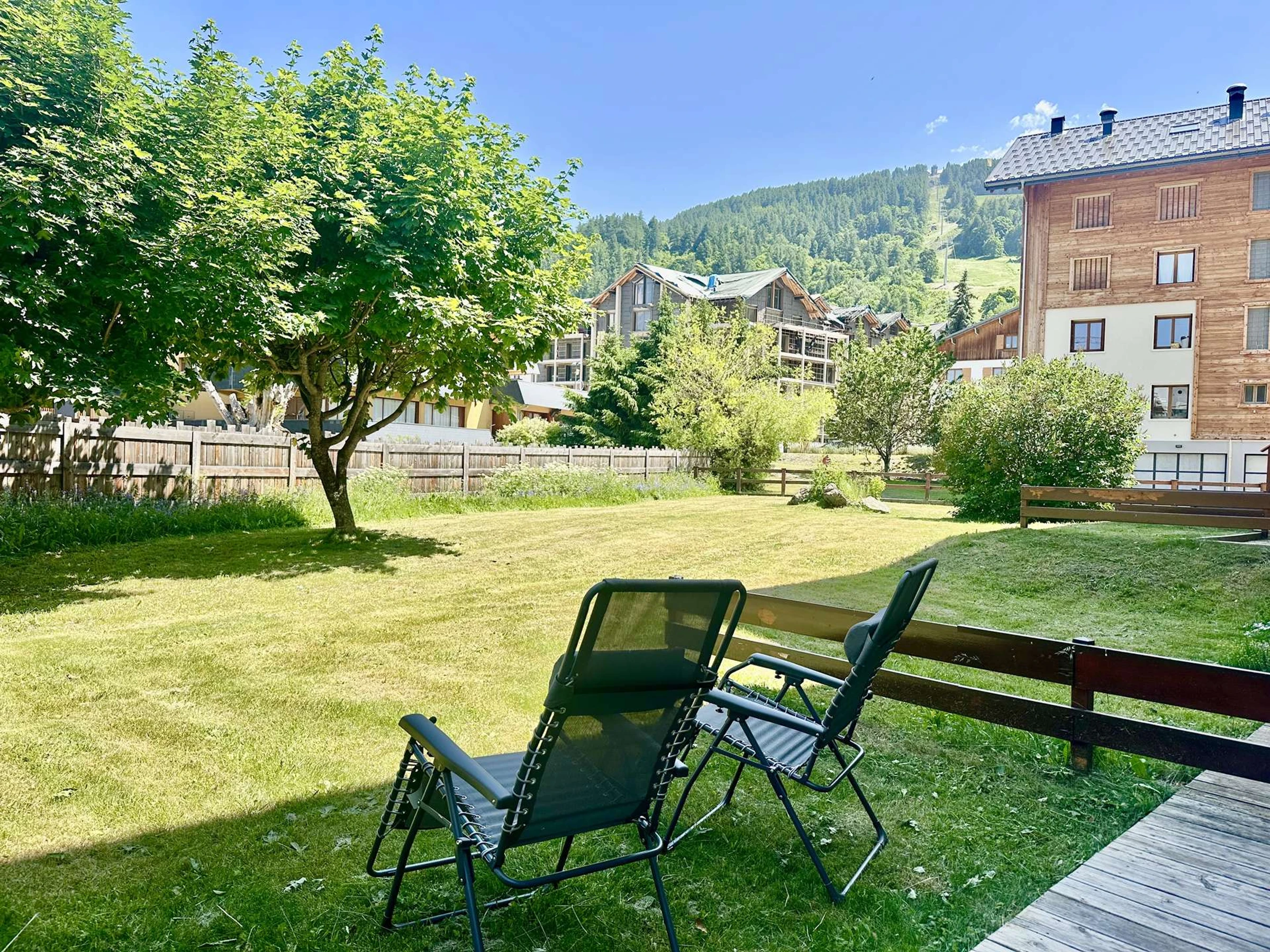 Appartement non fumeur. Animaux refusés. Draps non fournis. Casier à skis. Terrasse et jardin exposés Est.
