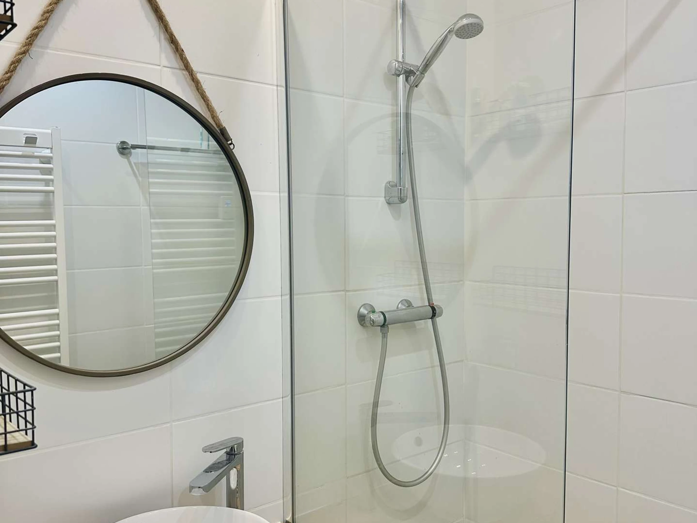 Salle d'eau : lavabo, douche. WC séparés avec lave-linge.