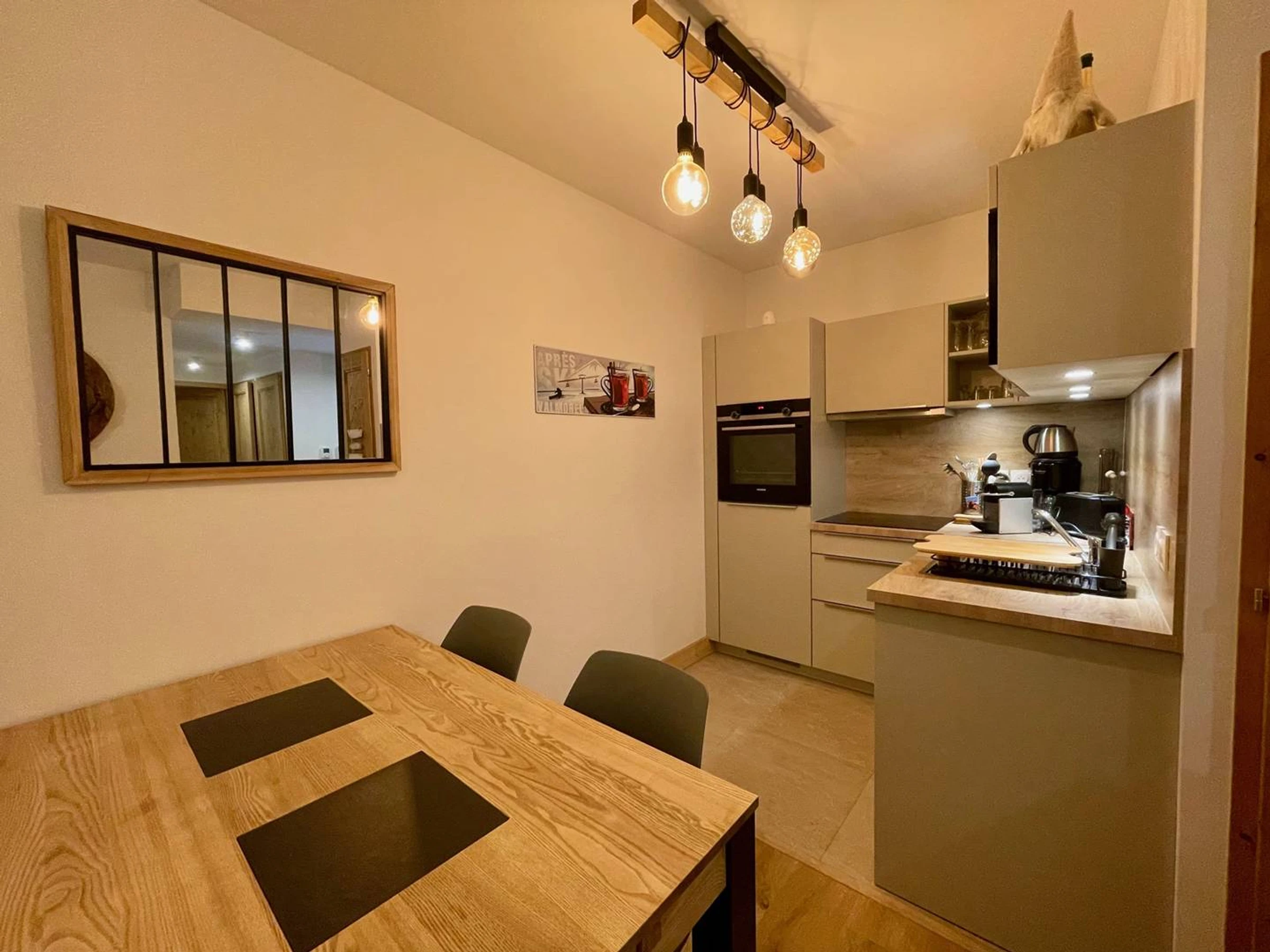 - Cuisine ouverte sur le séjour, parfaitement équipée avec lave-vaisselle, plaques vitrocéramiques, four traditionnel, micro-ondes, réfrigérateur avec freezer, cafetière Nespresso, bouilloire électrique, grille-pain, appareils à raclette, à fondue et à crêpes