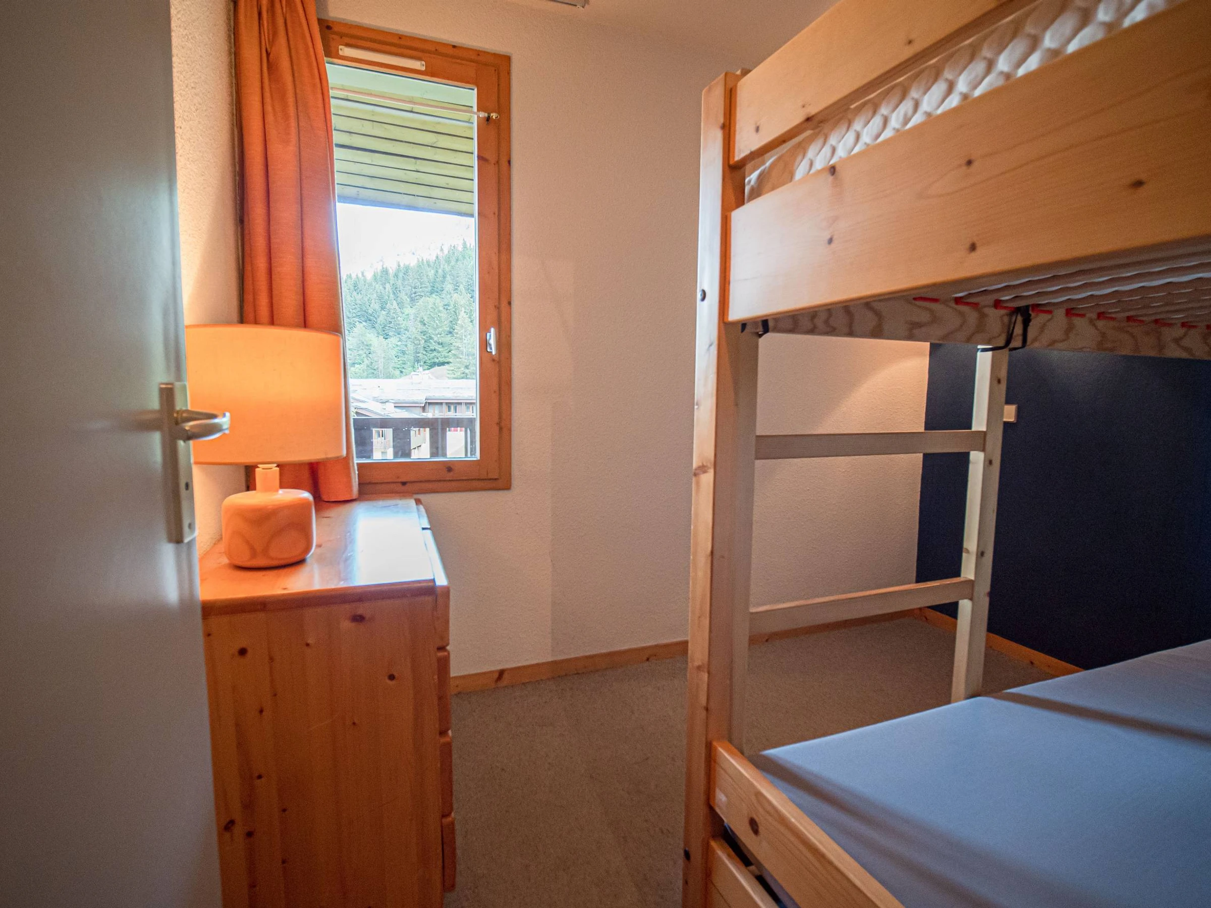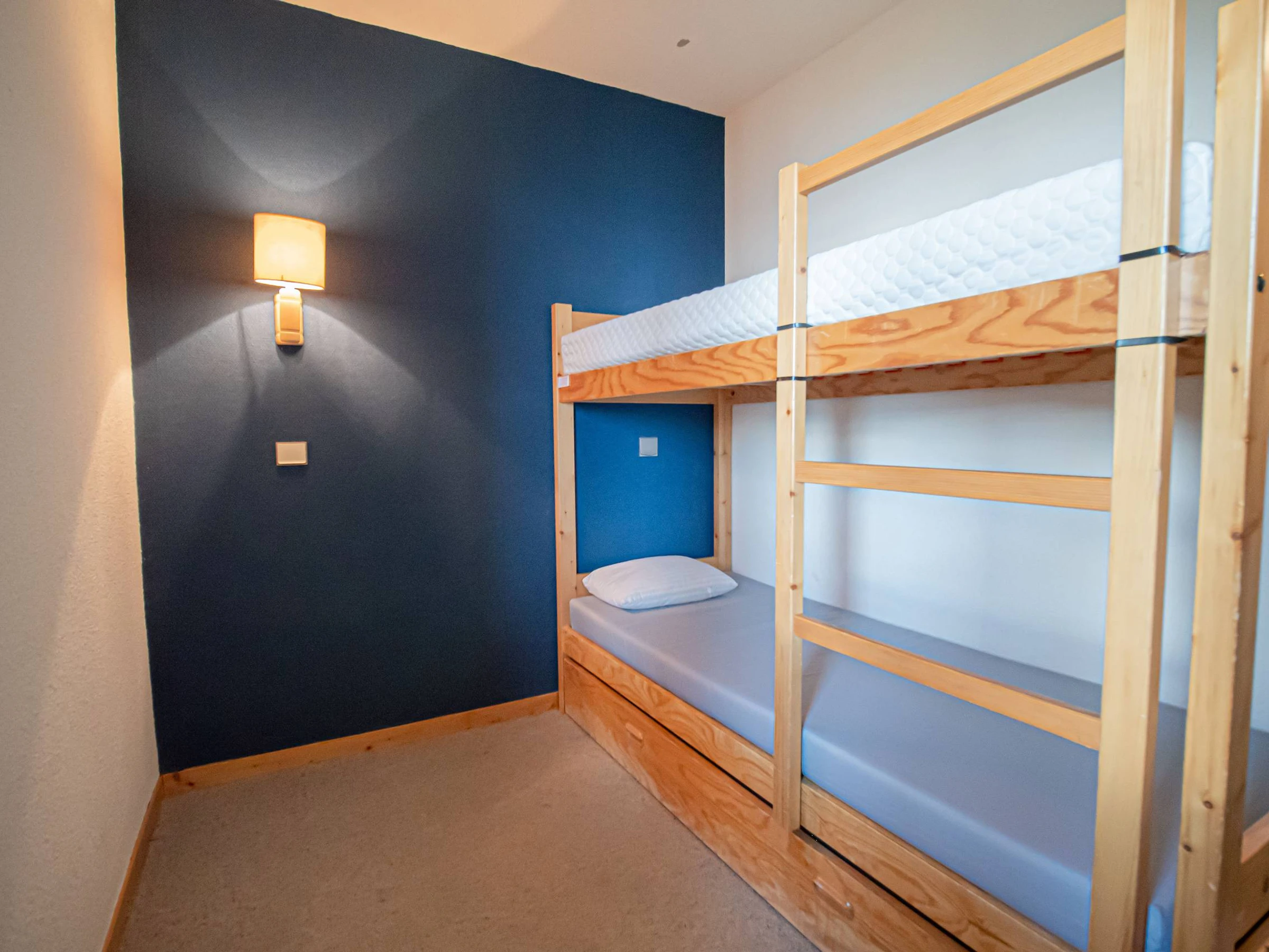 - Chambre avec un ensemble de lits superposés et un lit gigogne.