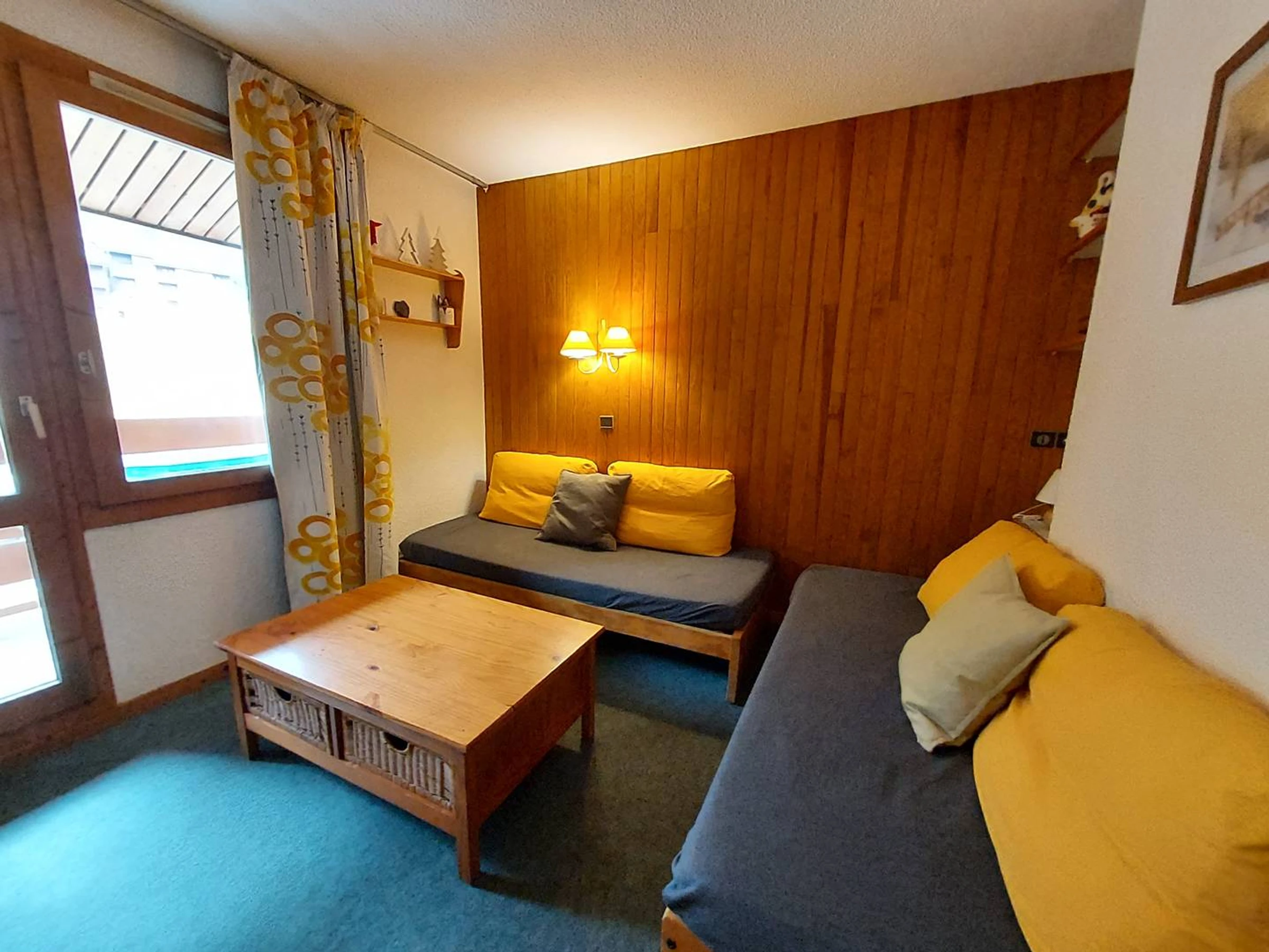 - Séjour divisible avec 3 lits simples (80 cm).