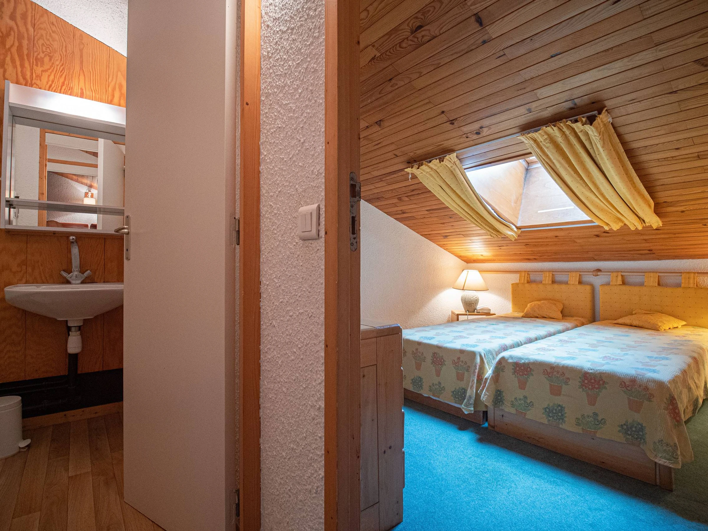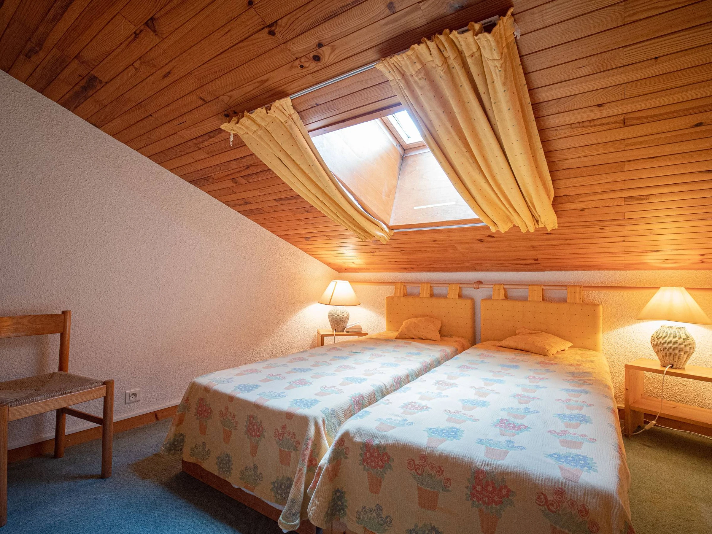 - Chambre 1 mansardée dispose de 2 lits simples.